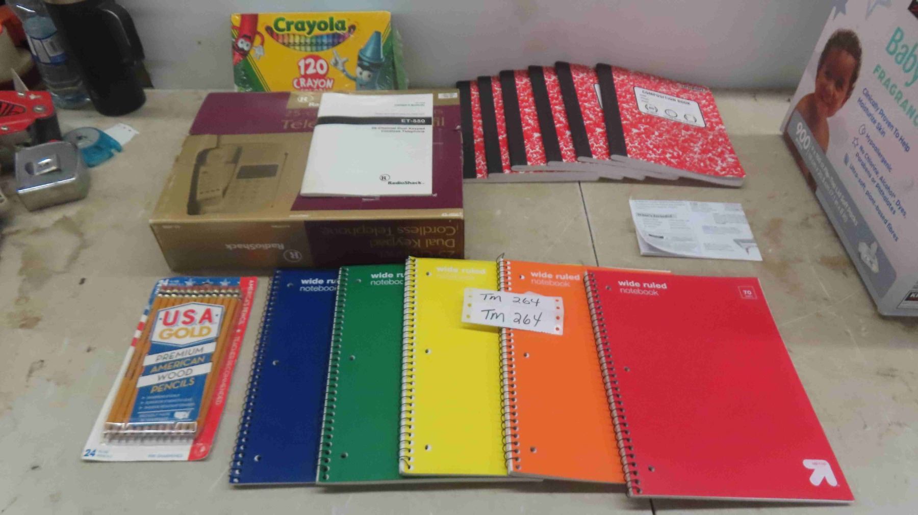Dual Cordless Phone, New 120 Crayons, 24 Pencils , 11 Note Books
