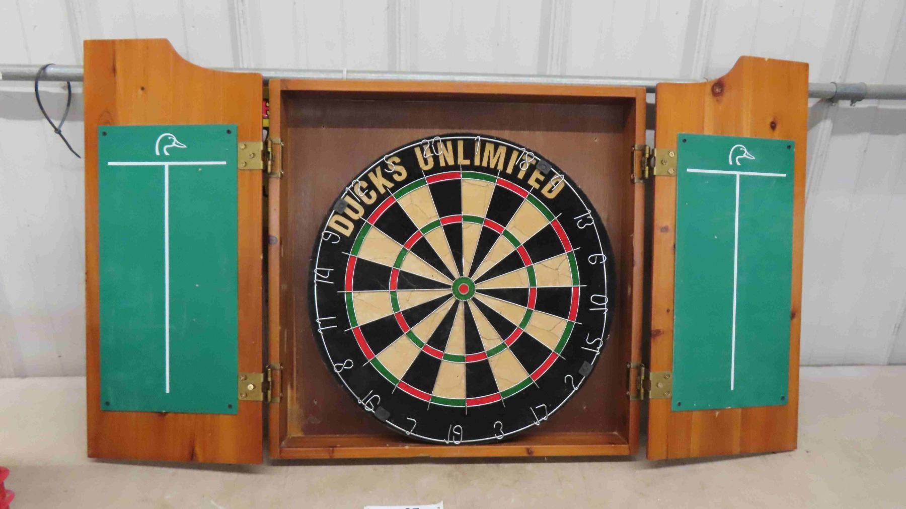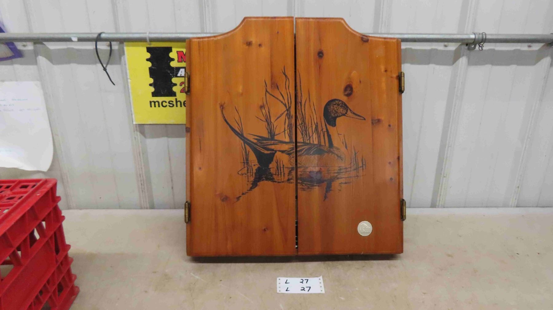 Ducks Unlimited Dart Board with Wooden Case 21.5" x 23.5"