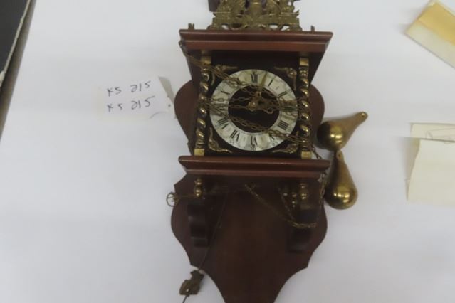 Dutch Style Ornate Clock Wood + Brass 7.5" x 18.5"