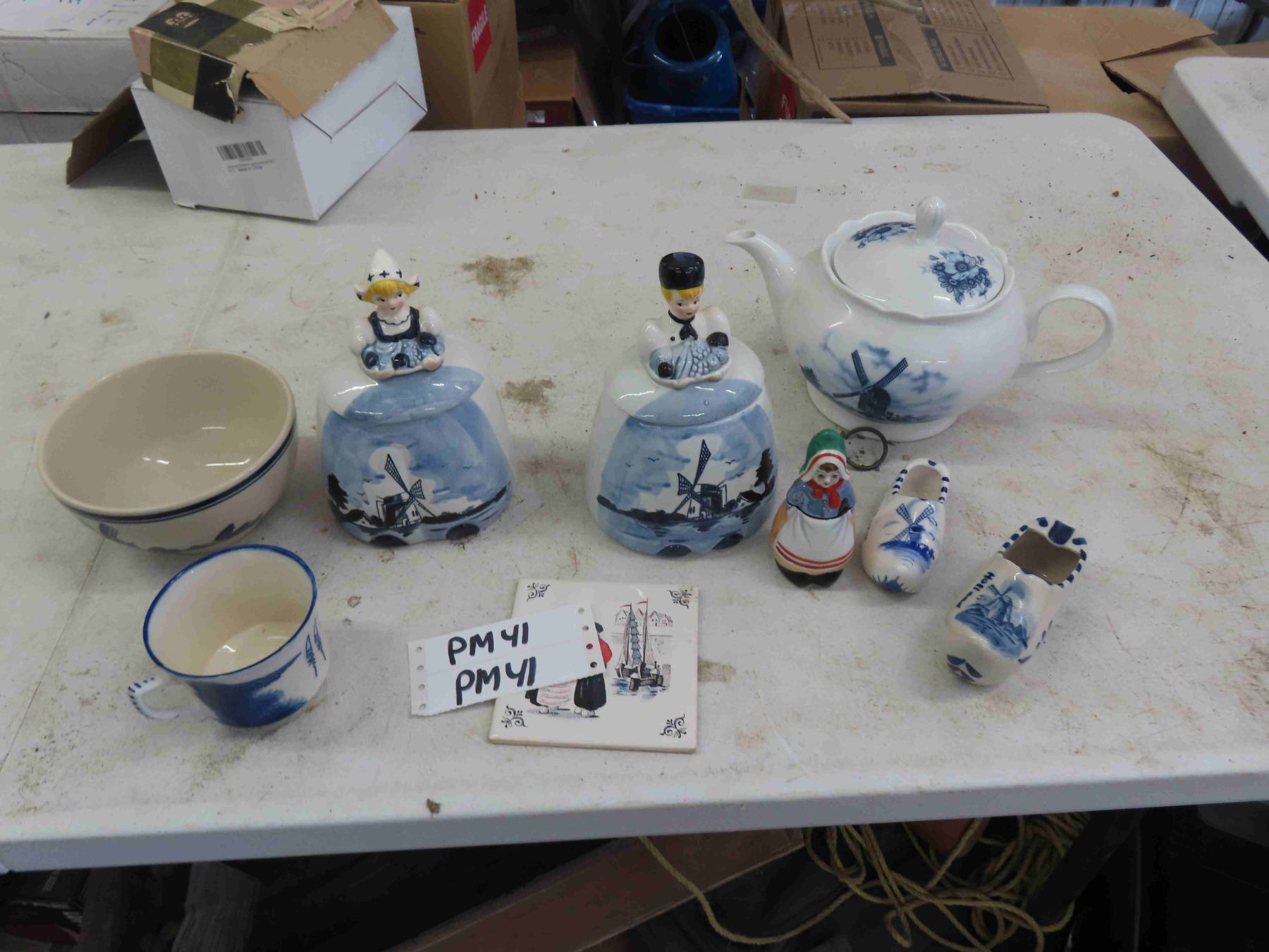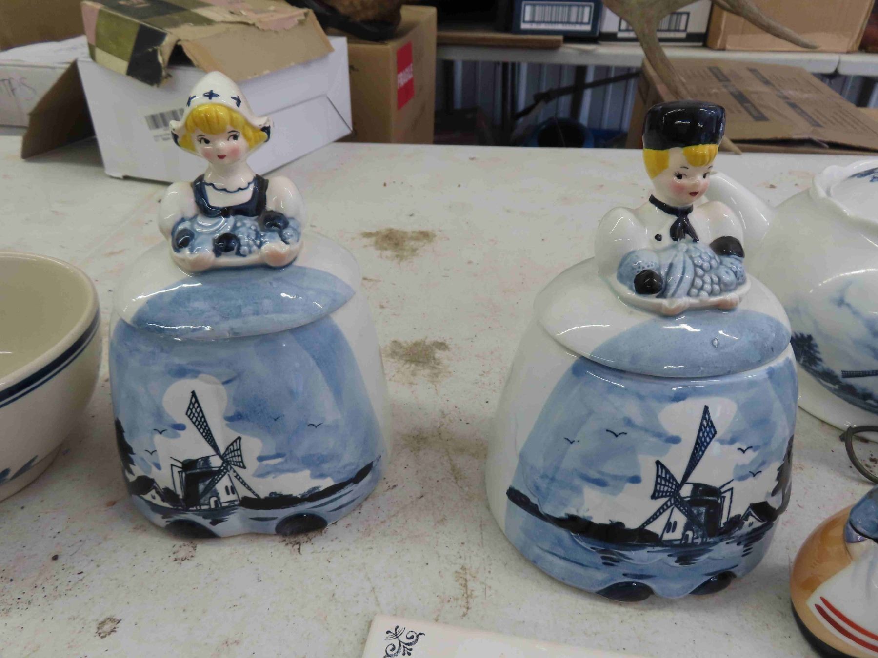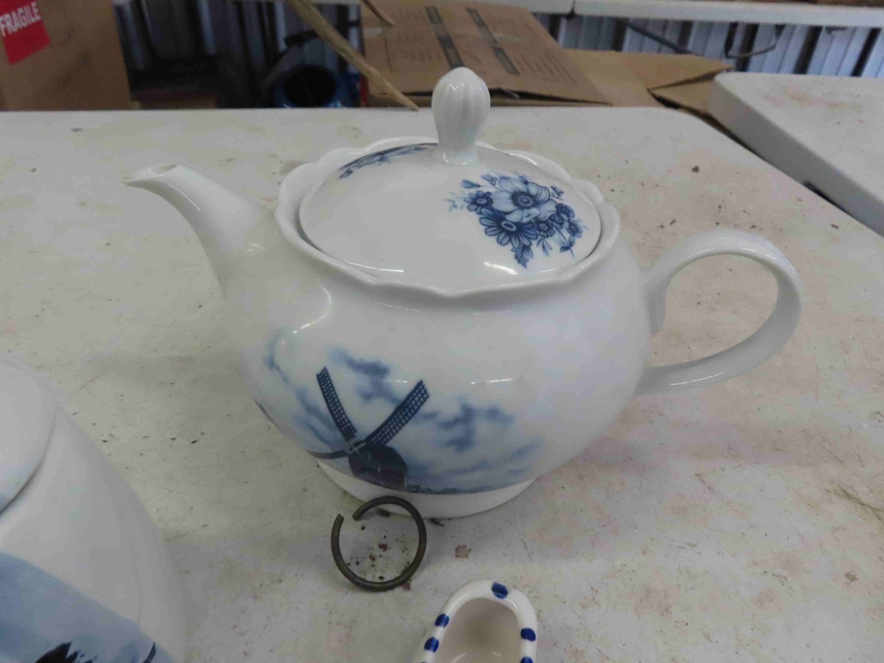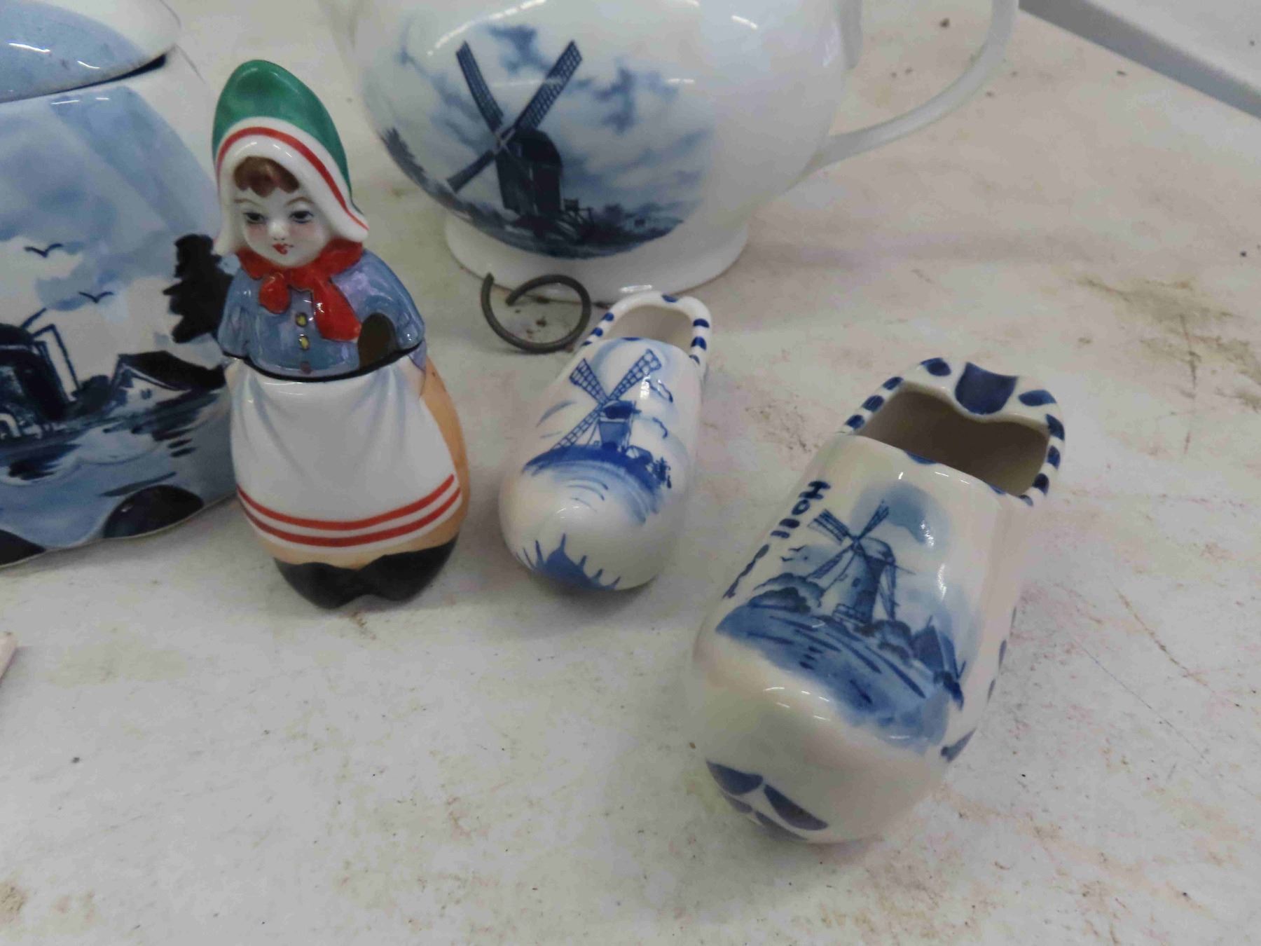 Dutch Themed Tea Pot, Canisters, Cup + Bowl, Ornamental Clogs