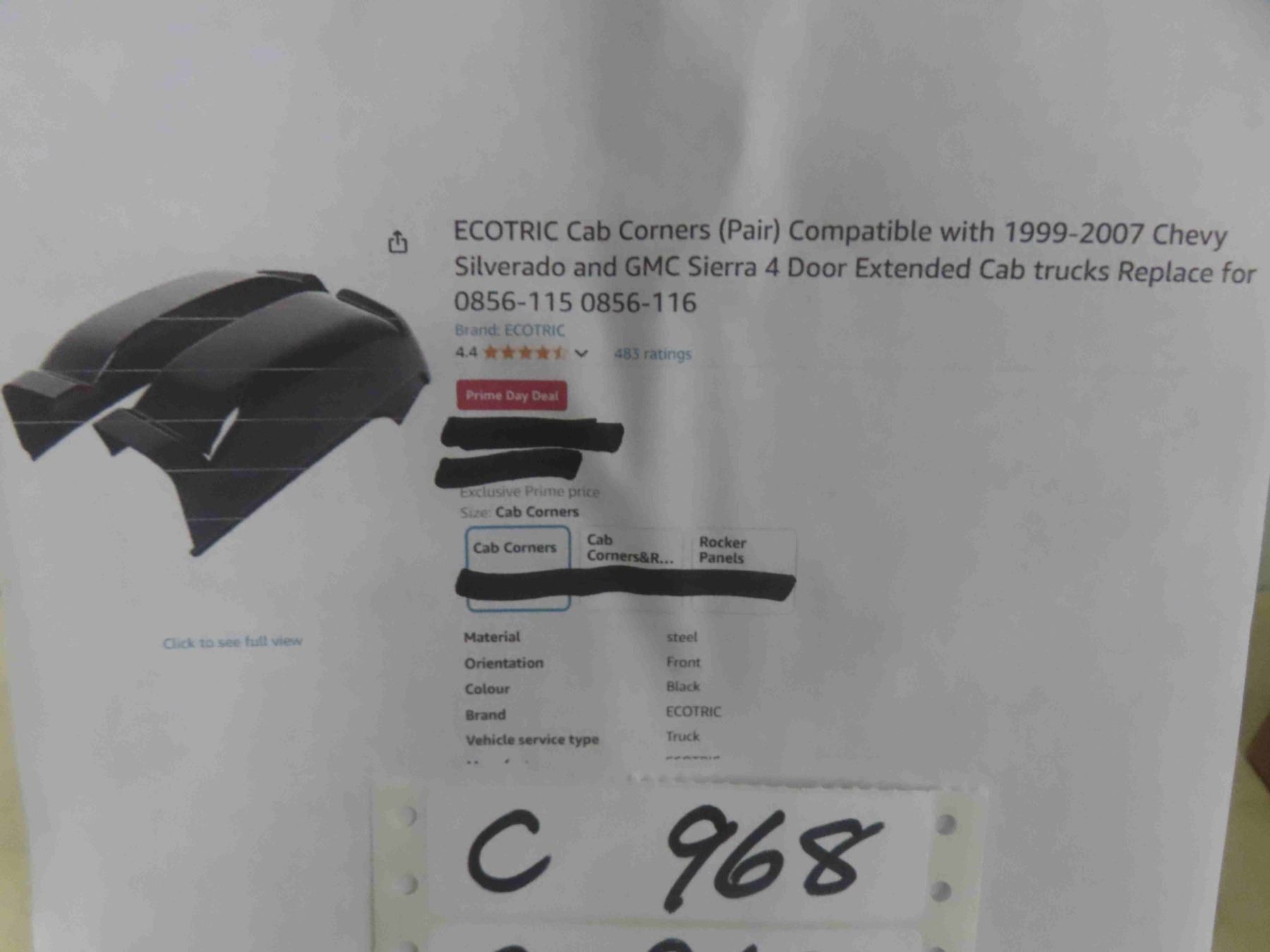 ECOTRIC Cab Corners (Pair) Compatible with 1999-2007 Chevy Silverado and GMC Sierra 4 Door Extended Cab trucks Replace for 0856-115 0856-116 - New or Store Return