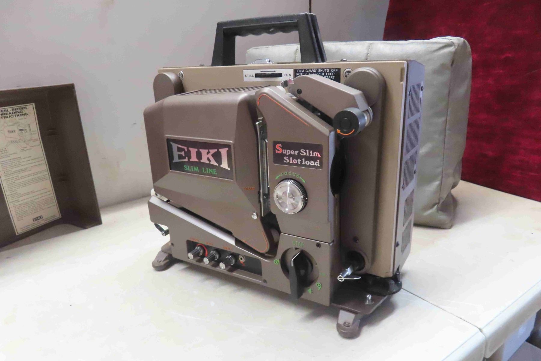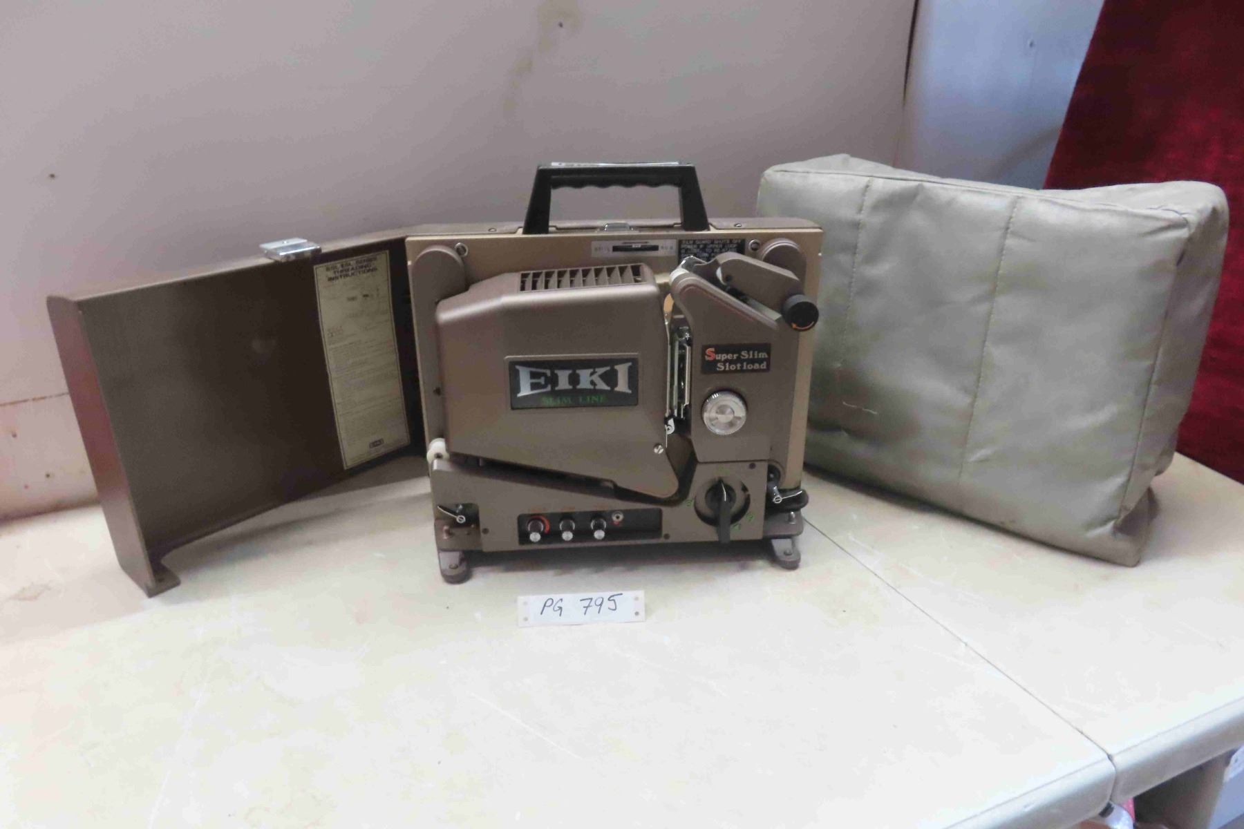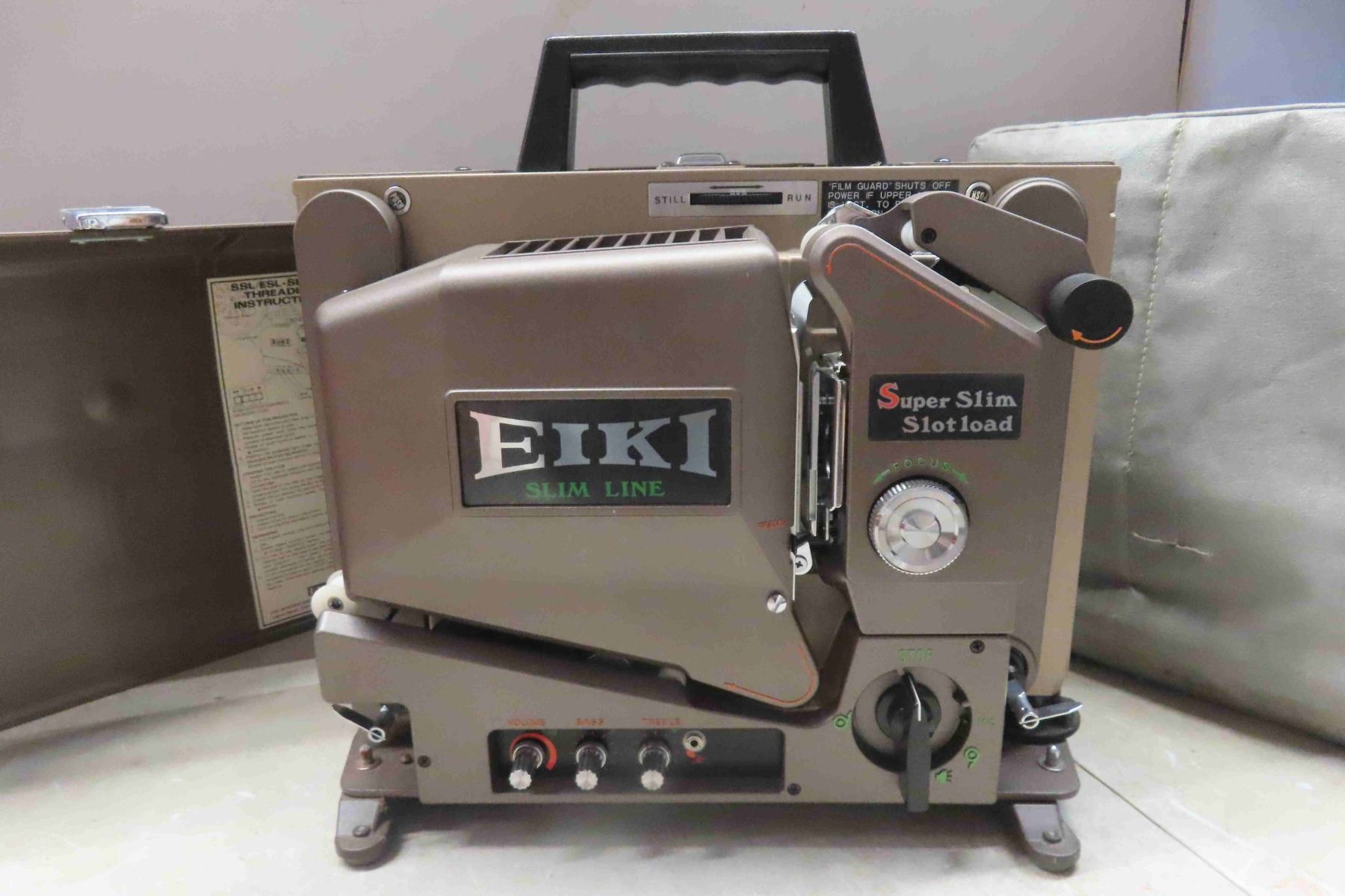 EIKI Slim Line Slot Load Model SSL-O 16mm Movie Projector with Sound & Microphone Jack. Comes with Protective Cover.