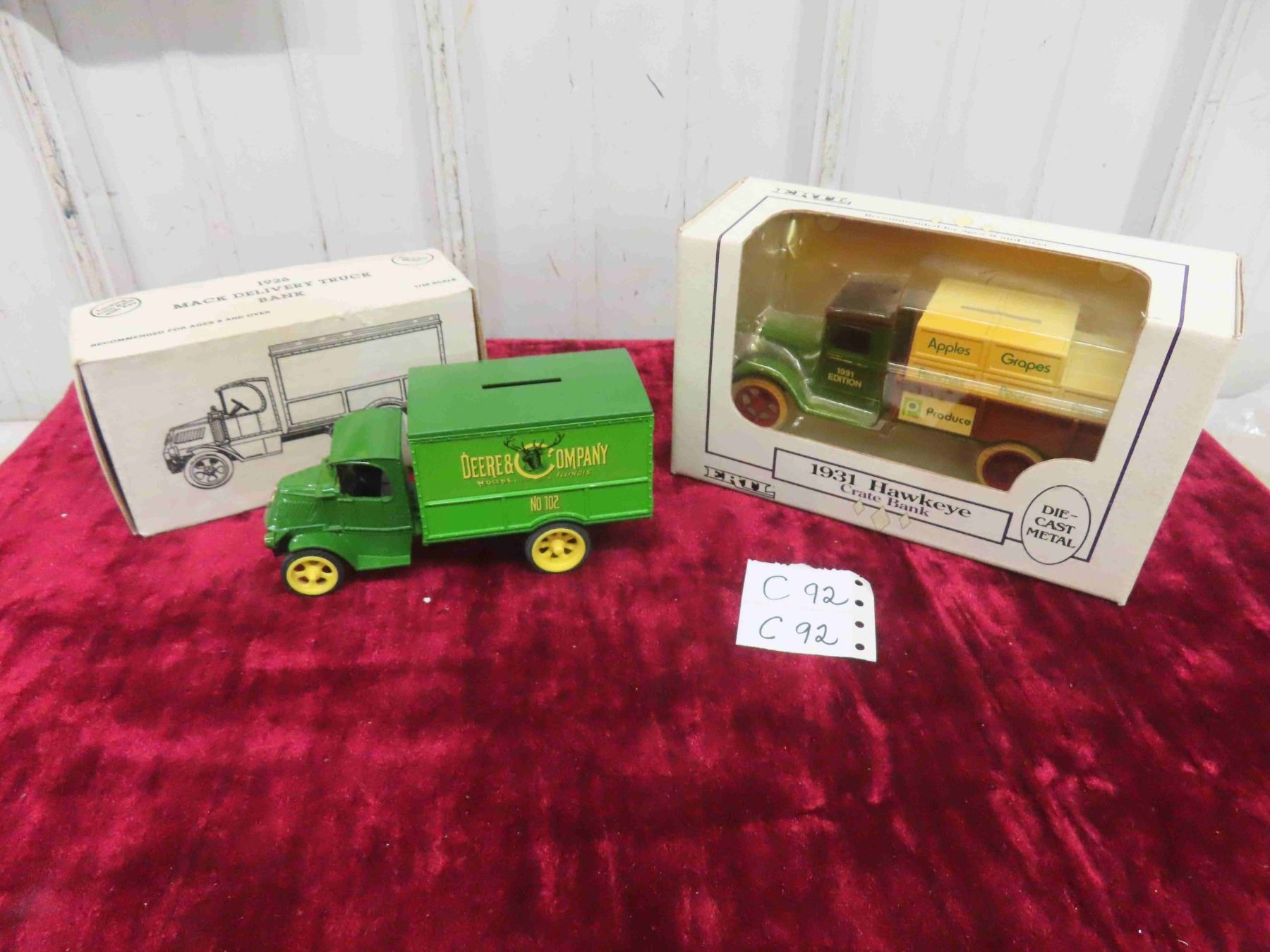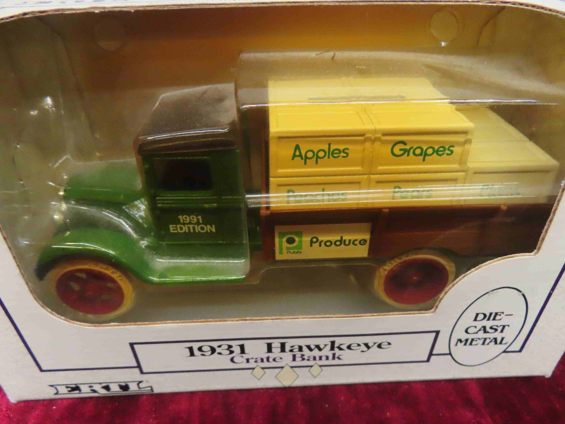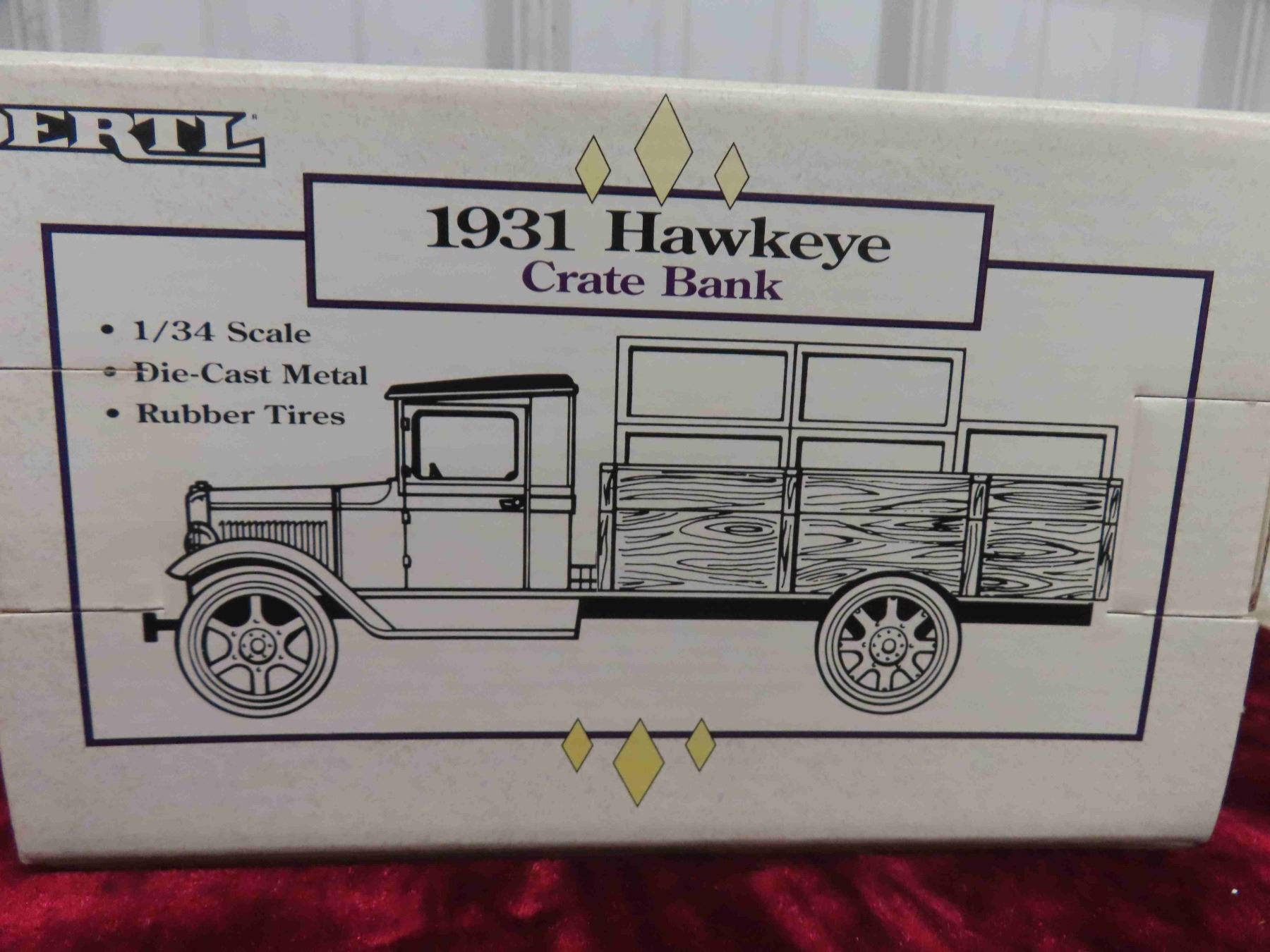 ERTL 1931 Hawkeye Crate Die Cast Metal Bank 1:34 Scale + 1926 Mack Delivery Truck 1:38 Scale in Original Boxes