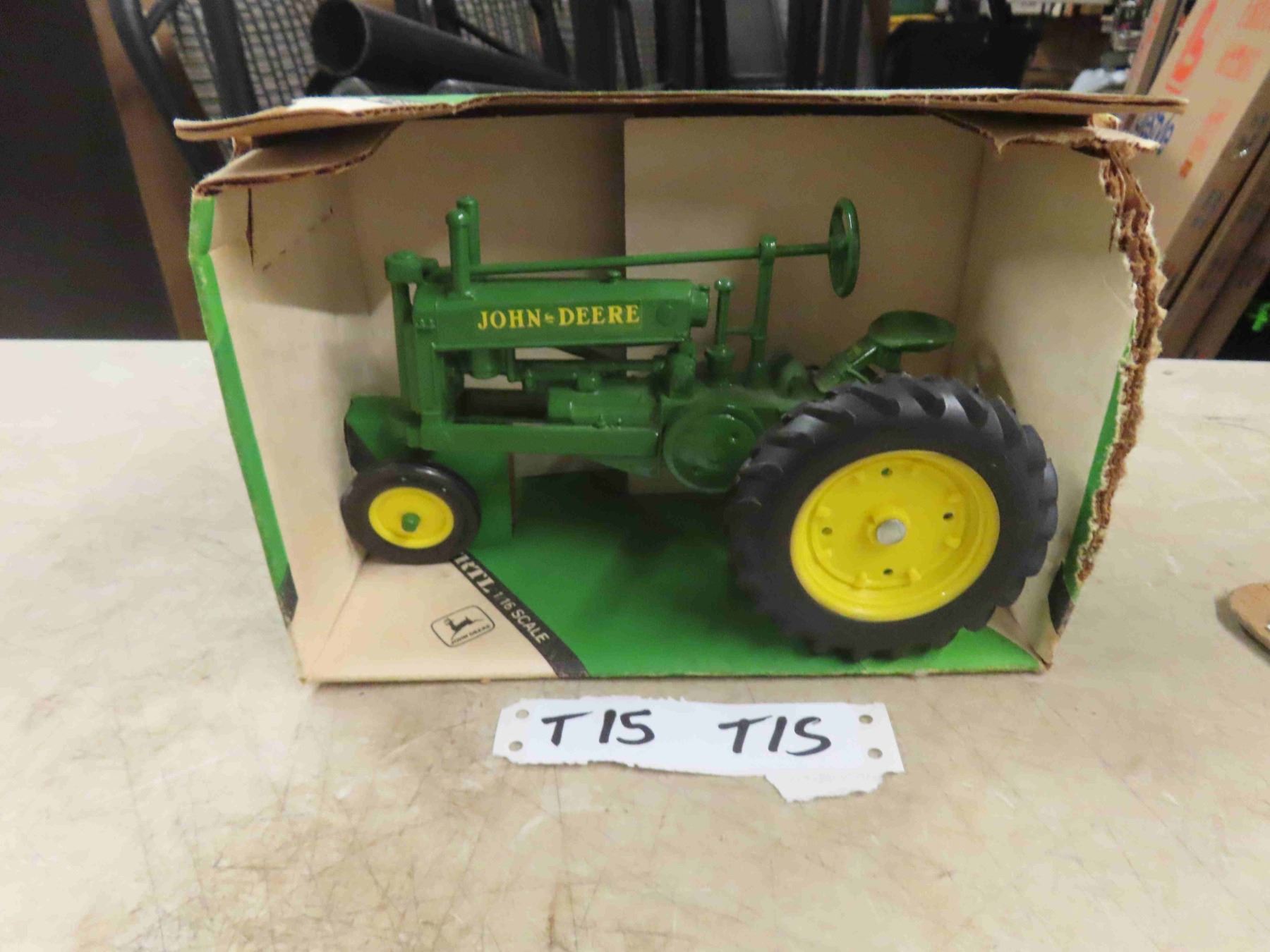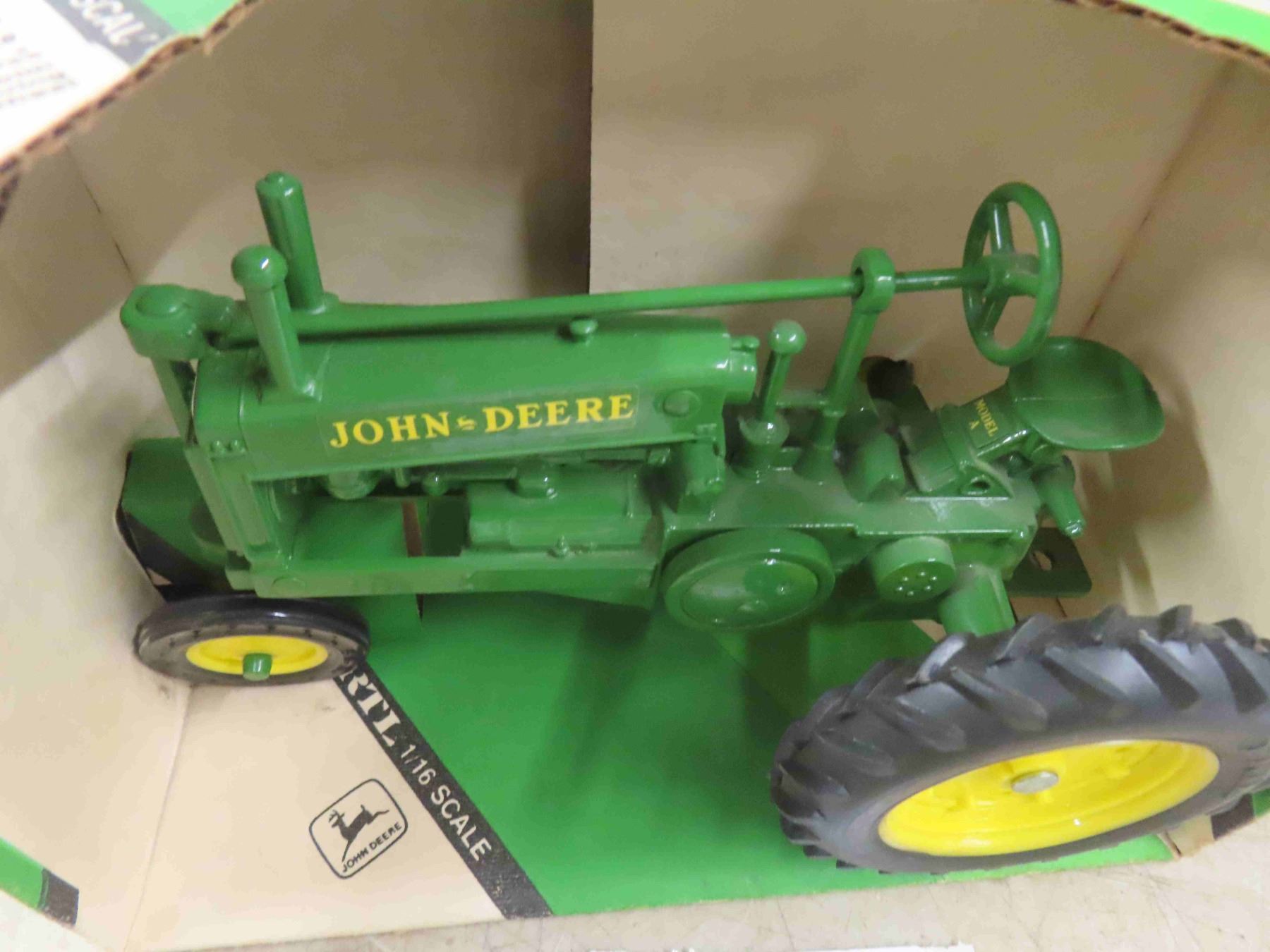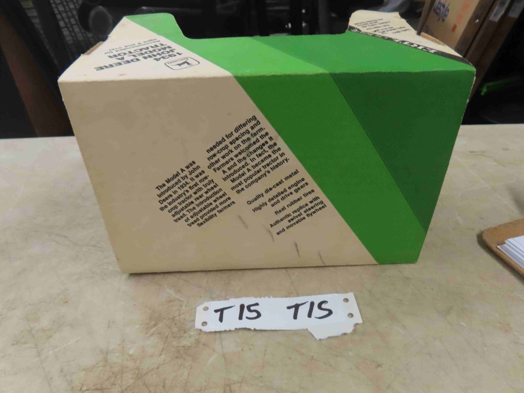 ERTL 1934 JD Model A Die Cast Tractor with Box - rough box 1:16 Scale ; Highly Detailed Engine + Drive Gears, Rubber Tires, Authentic Replica with Swivel Steering, Moveable Flywheel