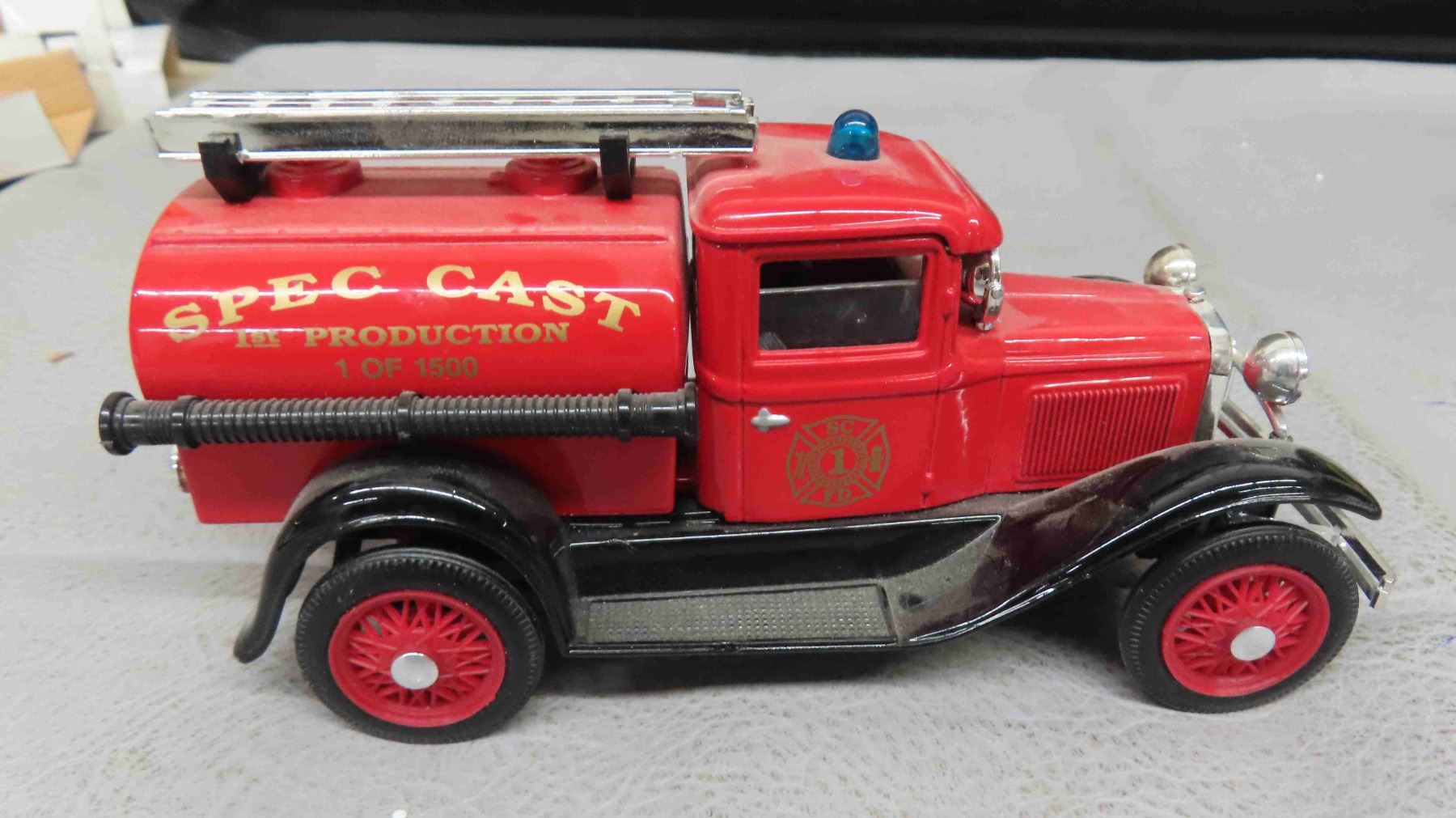 ERTL Deere Company Die Cast Metal Coin Bank with Key 2.25" x 3" x 7" & Spec Cast Limited Edition Model A Firetruck Lockable Coin Bank, 1:25 Scale