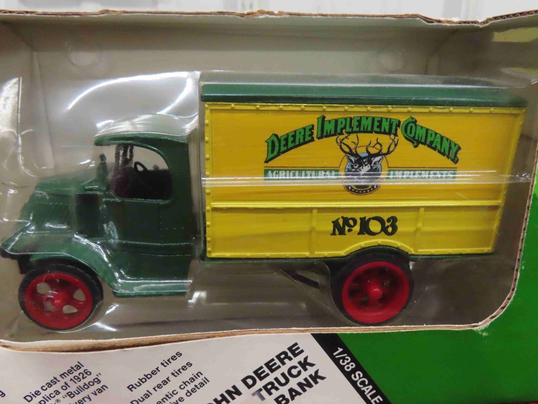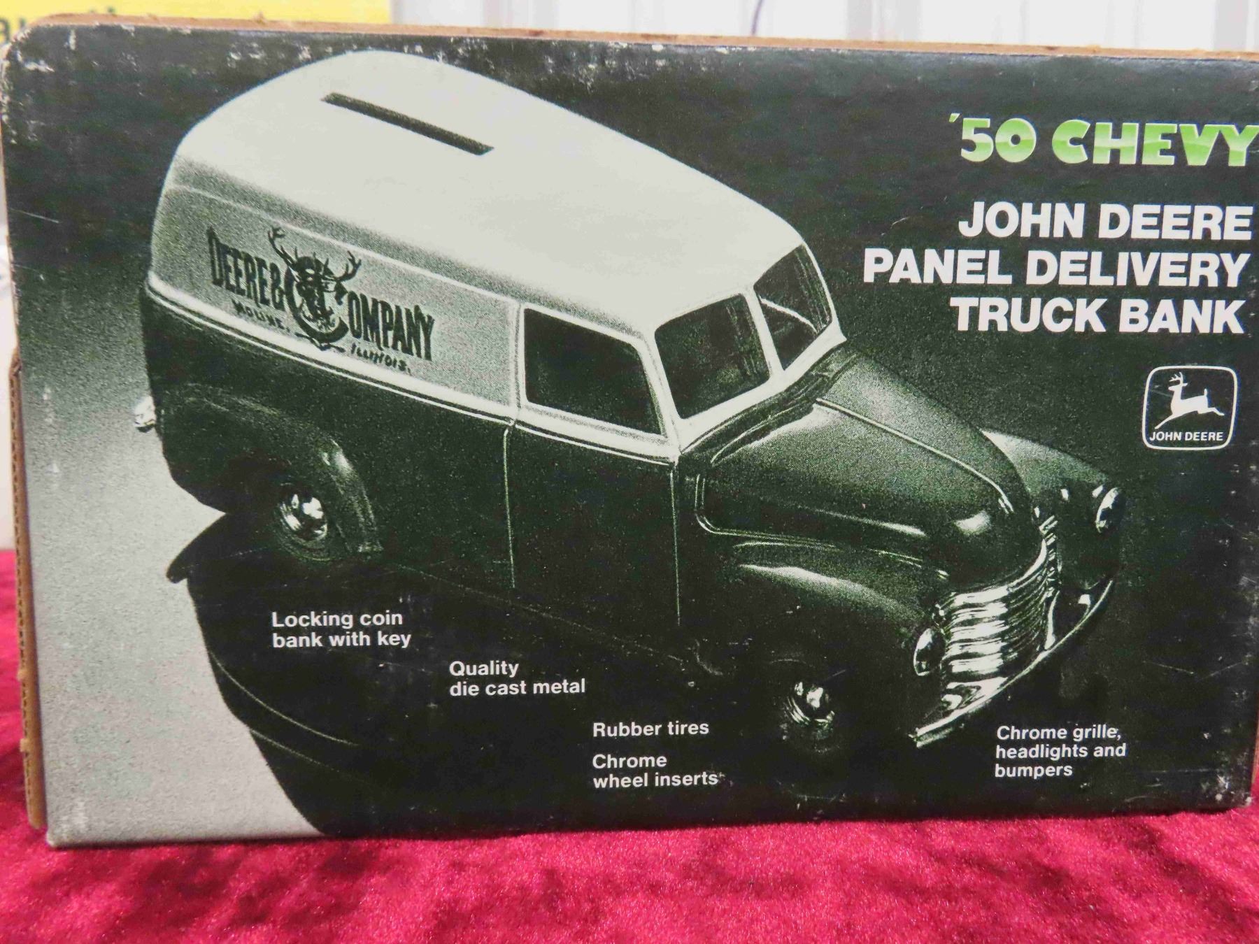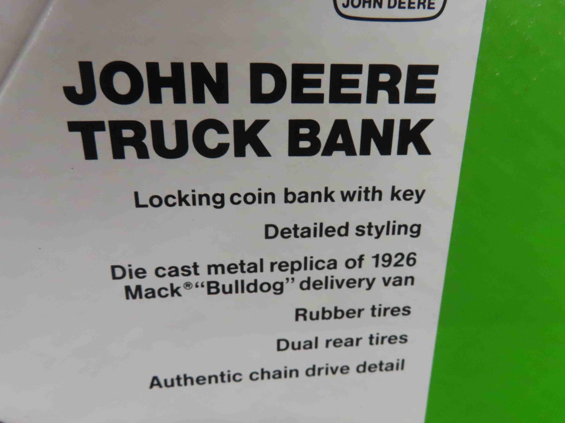 ERTL Die Cast 1926 Mc Bulldog John Deere Delivery Van 1:38 Scale & 50 Chevy John Deere Locking Coin Bank 1:25 Scale in Original Package