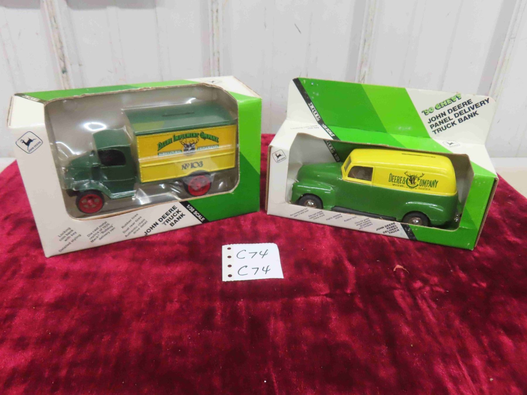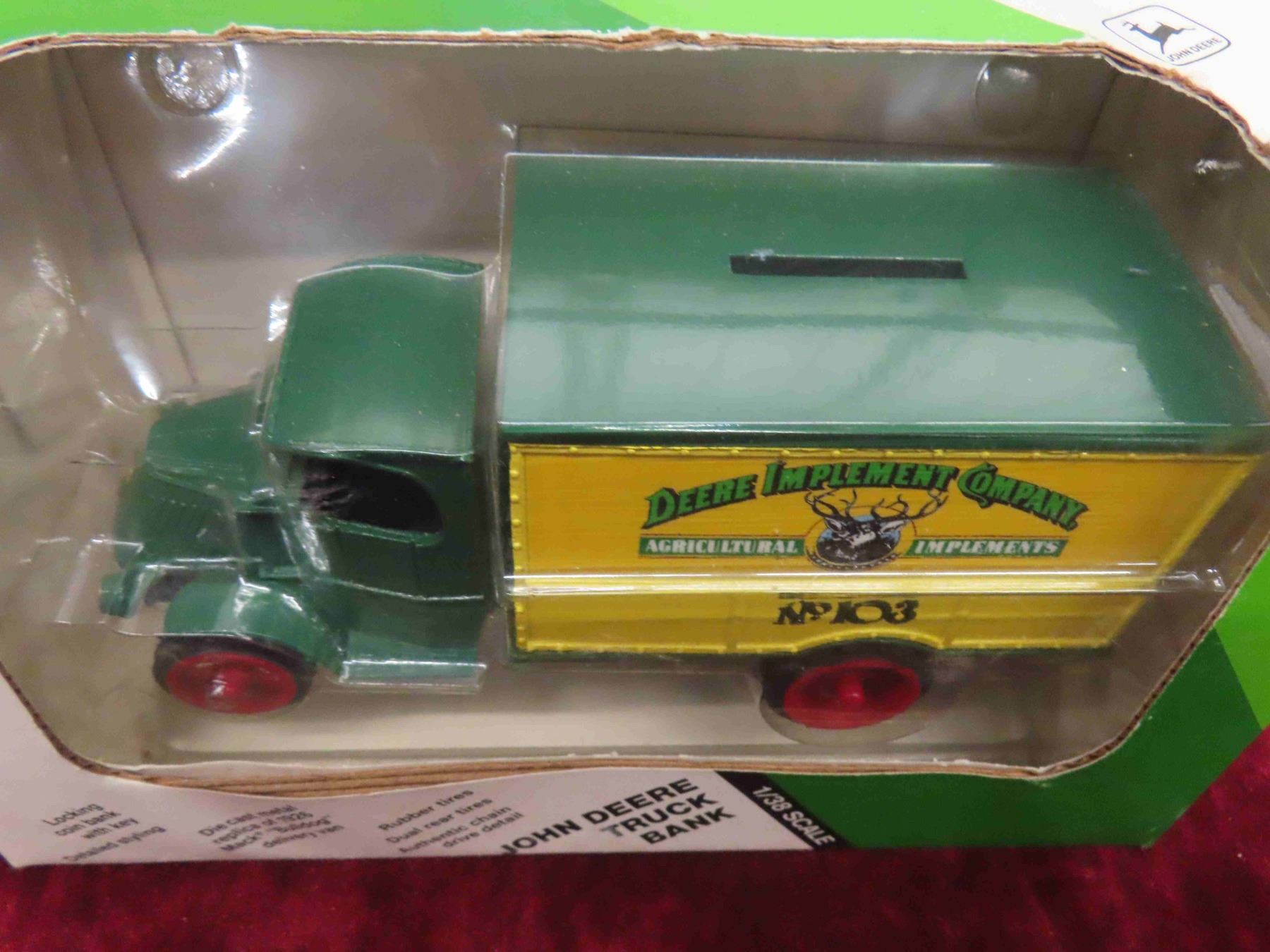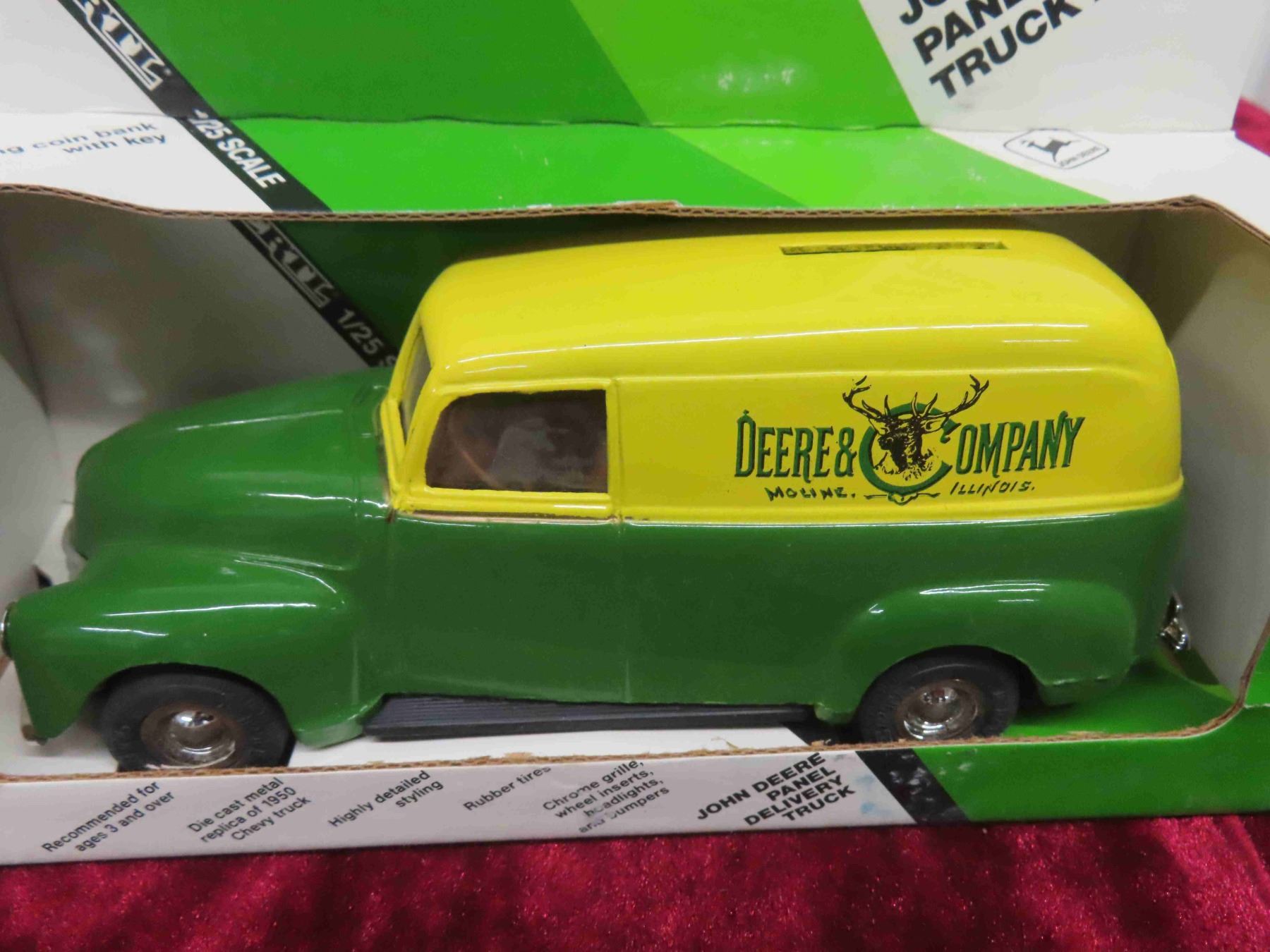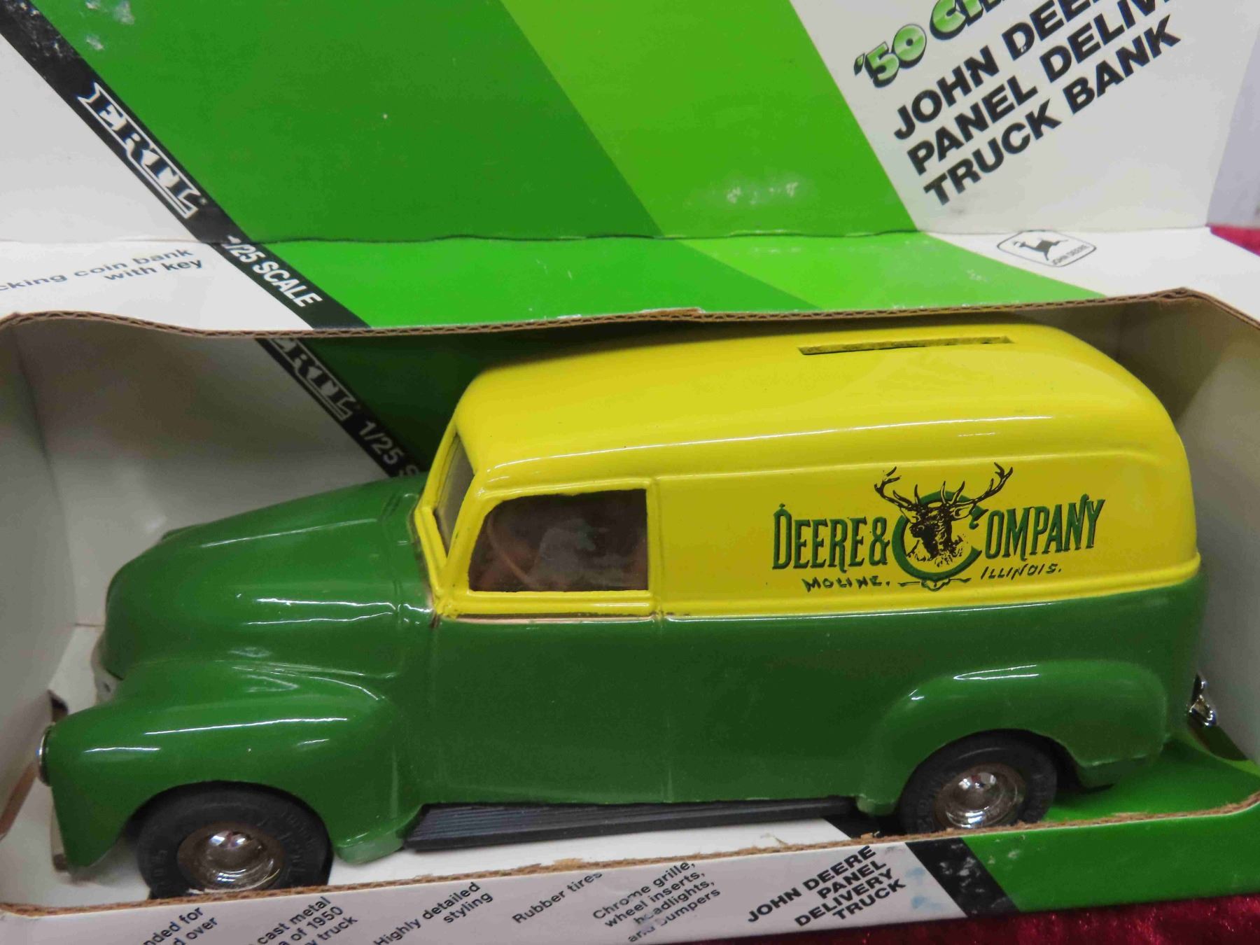 ERTL Die Cast 1926 Mc Bulldog John Deere Delivery Van 1:38 Scale & 50 Chevy John Deere Locking Coin Bank 1:25 Scale in Original Package