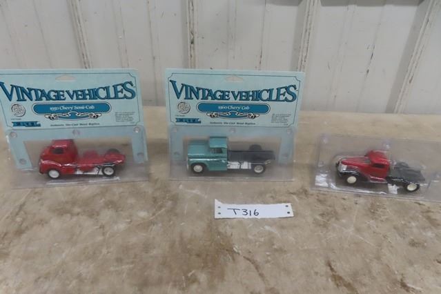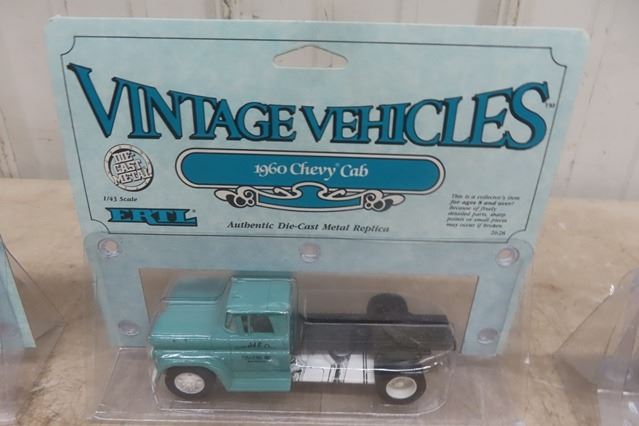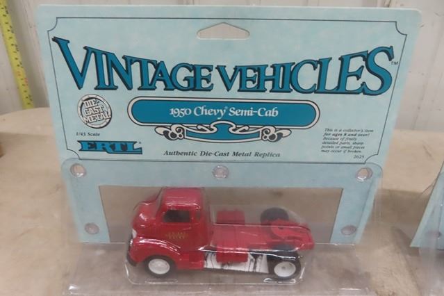 ERTL Vintage Vehicles Die Cast Trucks on Cards - 1950 Chevy, 1960 Chevy, 1947 International Harvester ( 2 on Full Cards, 1 Missing Card) Scale 1:43
