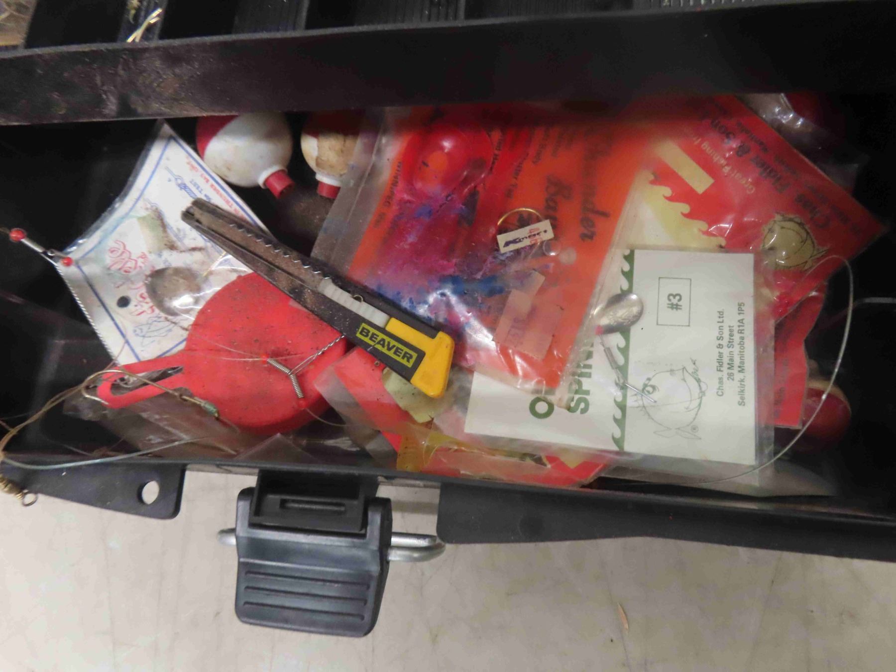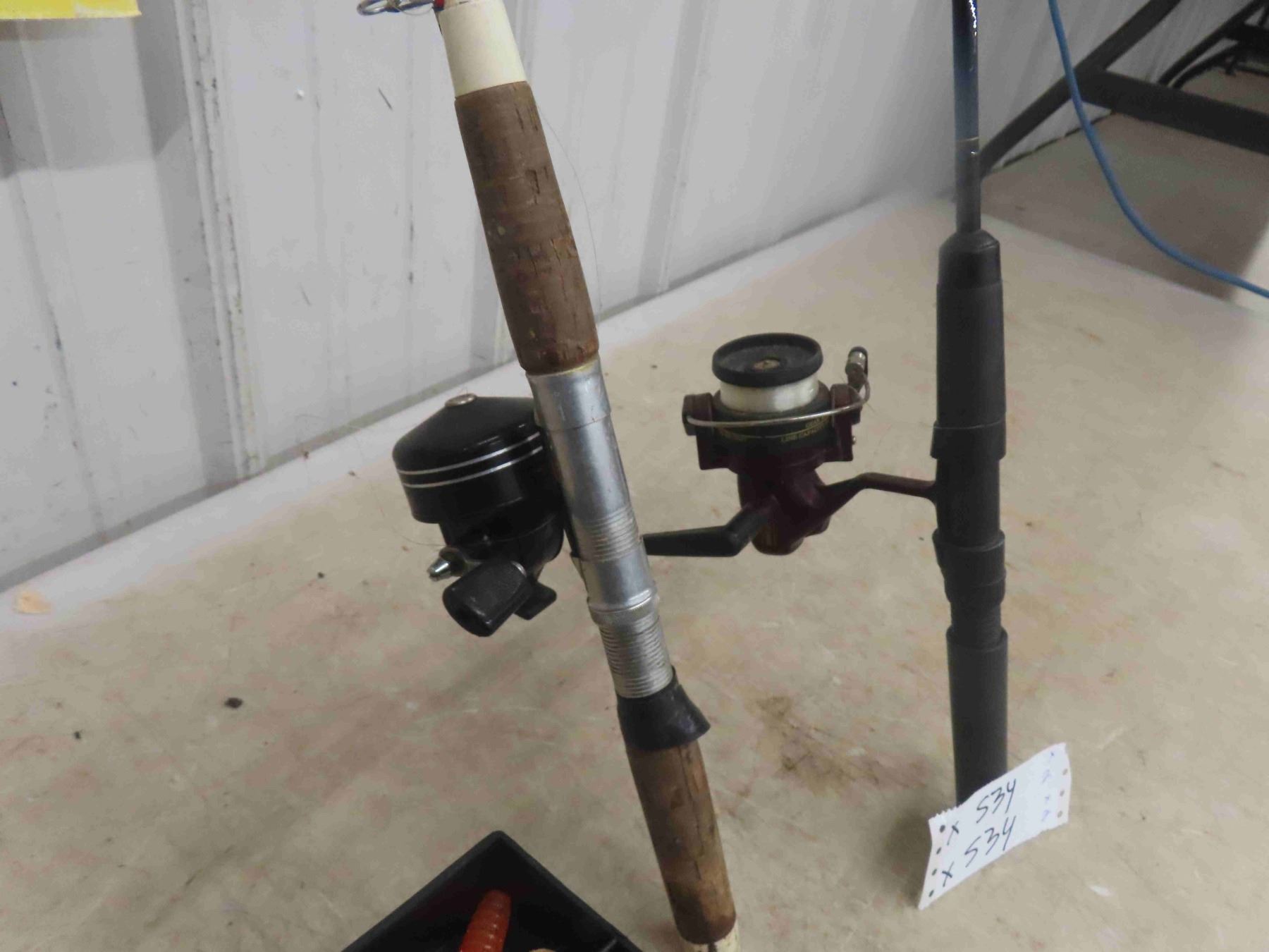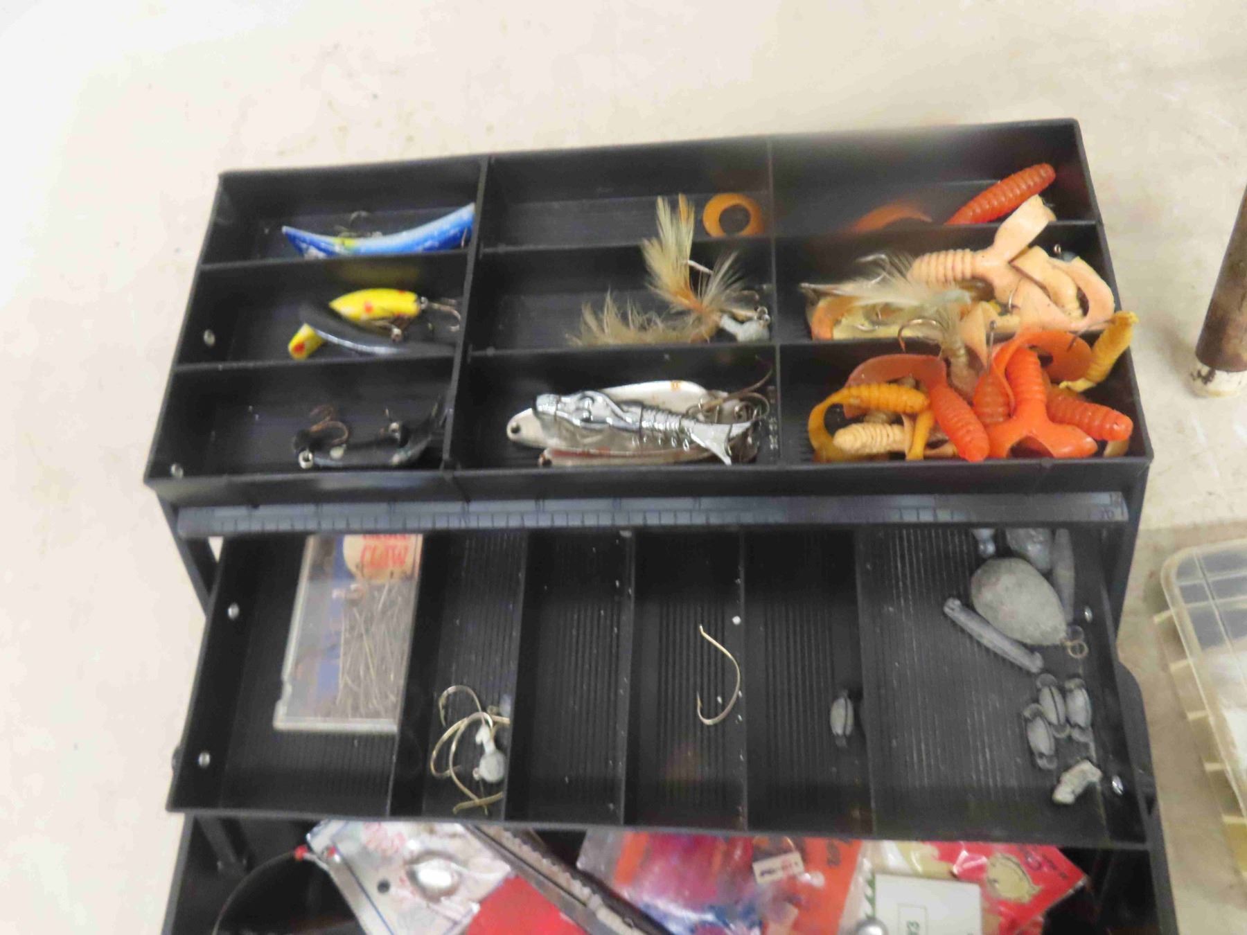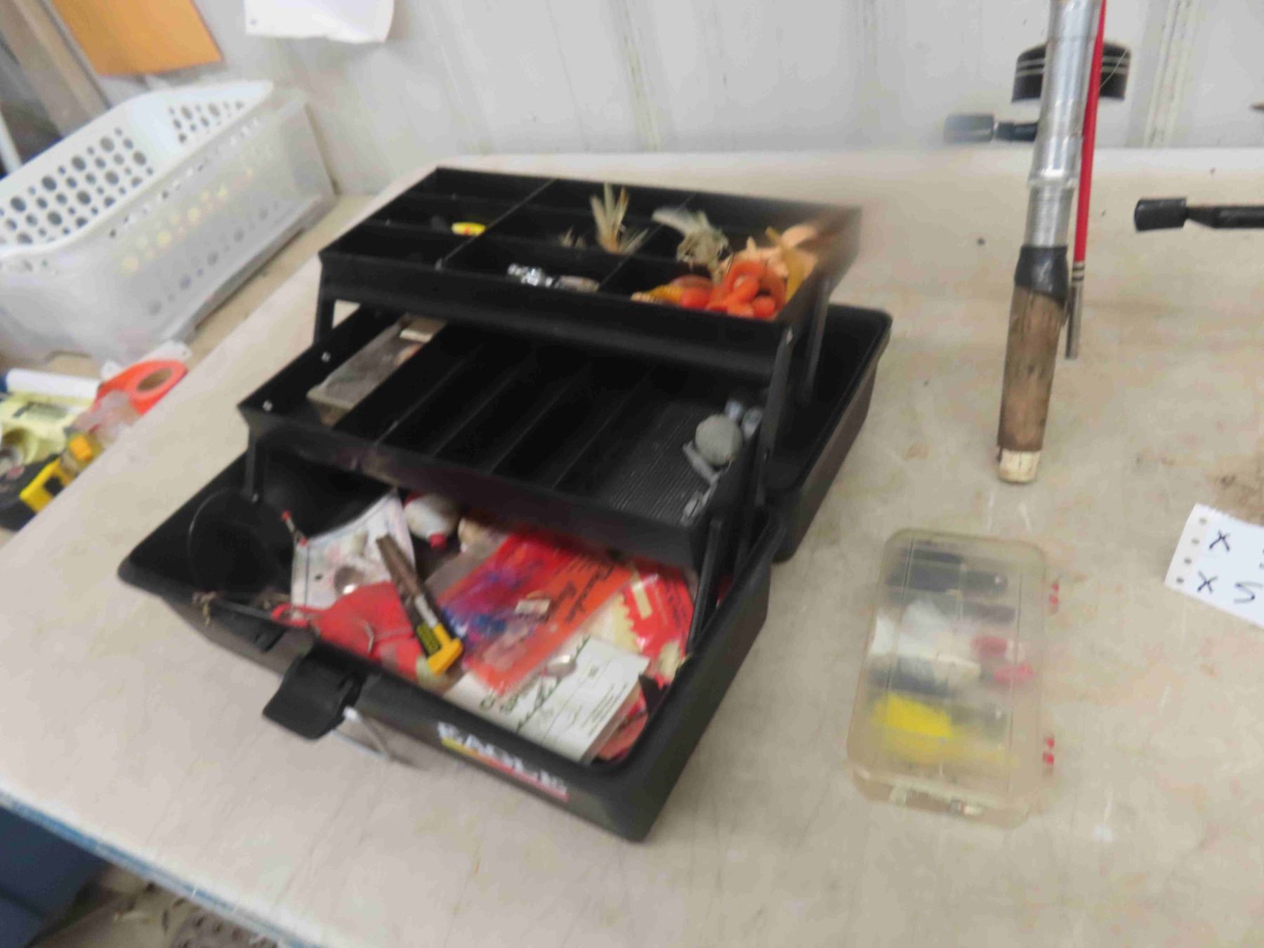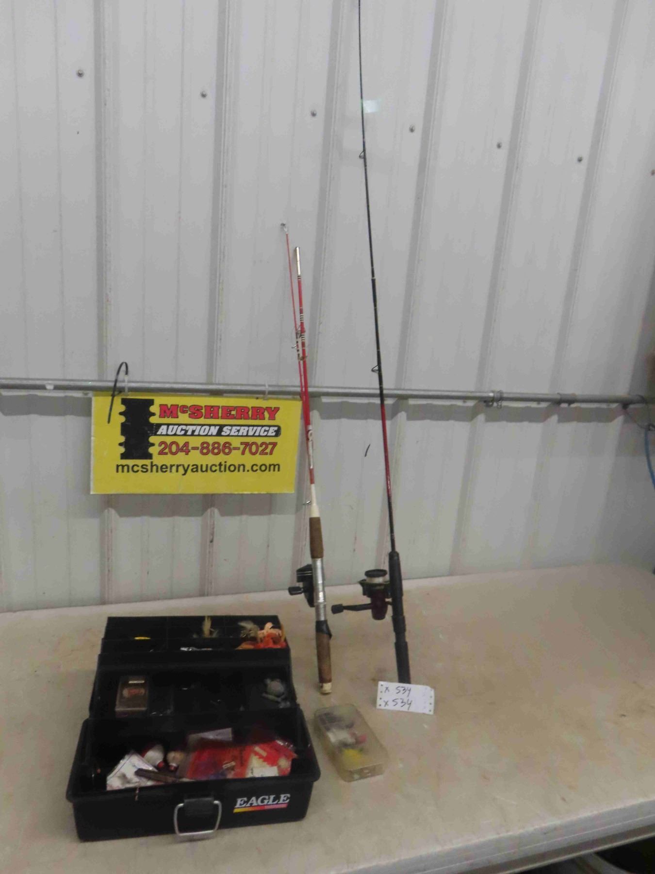 Eagle Tackle Box with Tackle, Hooked, Jigs, Lures & 2 Fishing Rods with Reels