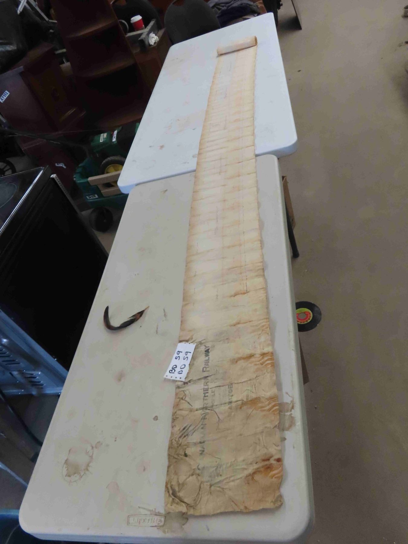 Early 1900's Canadian Northern Railway ( Manitoba) Cloth Map - Very Large! 10' Long by 9" - Probably Surveyor's Map Outlining a Route for New Line of Tracks - Real Museum Piece