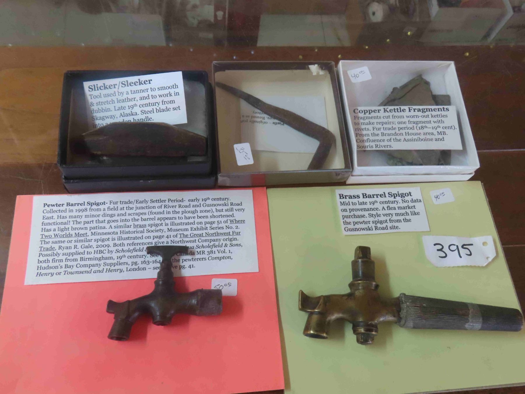 Early Brass Spigots, Copper Kettle Fragments, Pintle Hide Scraper