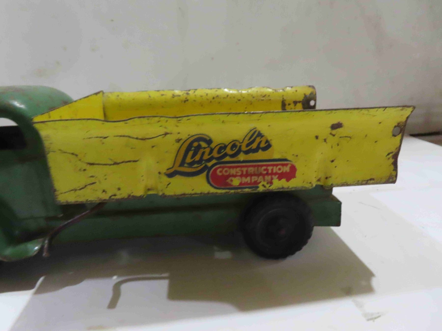 Early Lincoln Pressed Metal Gravel Truck 13'' x 4'' x 6''