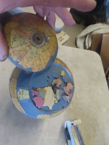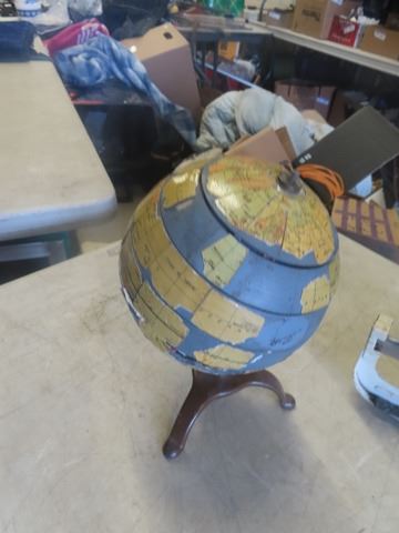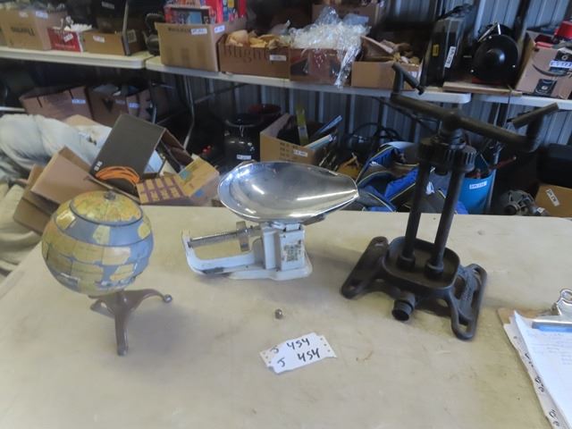 Early Old Metal Cast Basin, Flexible Shaft Co, Scale, Old Globe with Puzzle Top