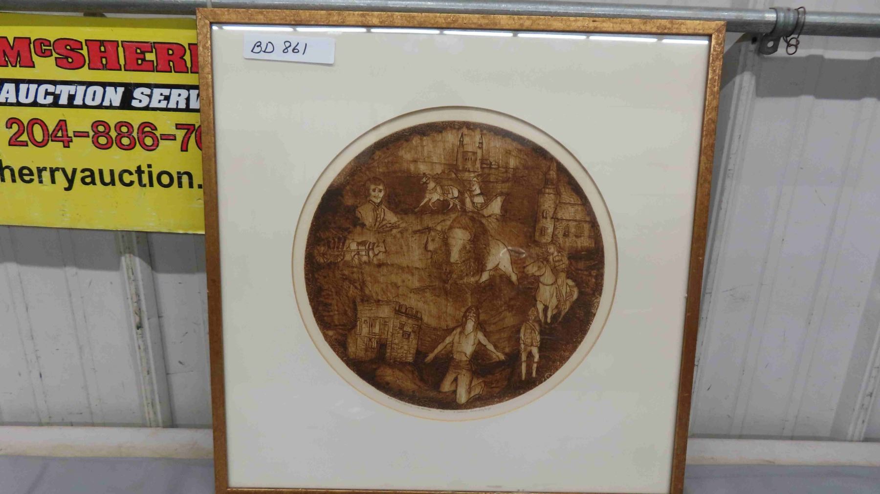 Early Winnipeg Etching Framed 20" x 20" Hand Signed + Numbered #2 of 10 - Shows Fort Garry Gate, St. Boniface, Indian Riel, etc.… ' 1870 Manitoba 100 Series