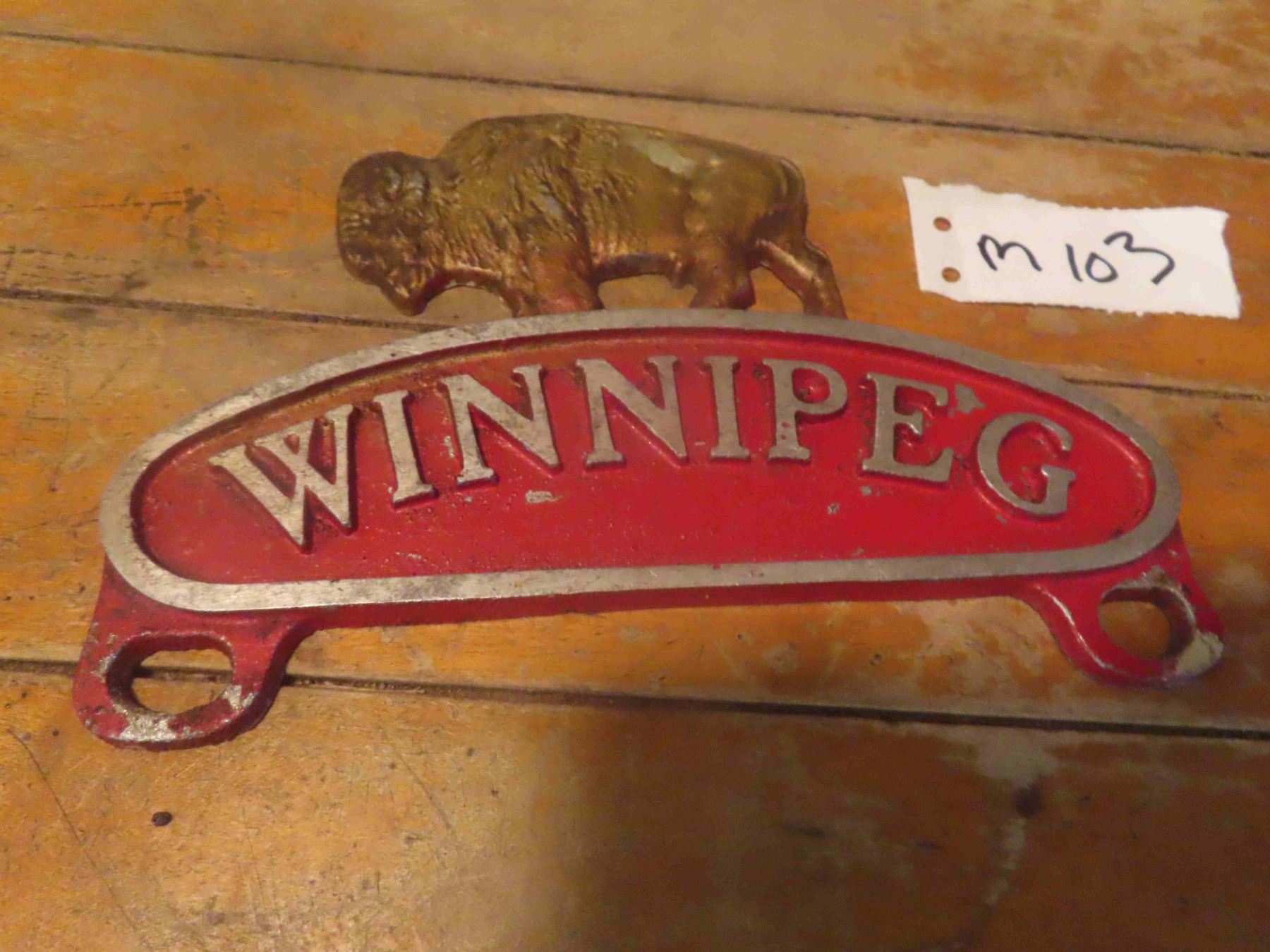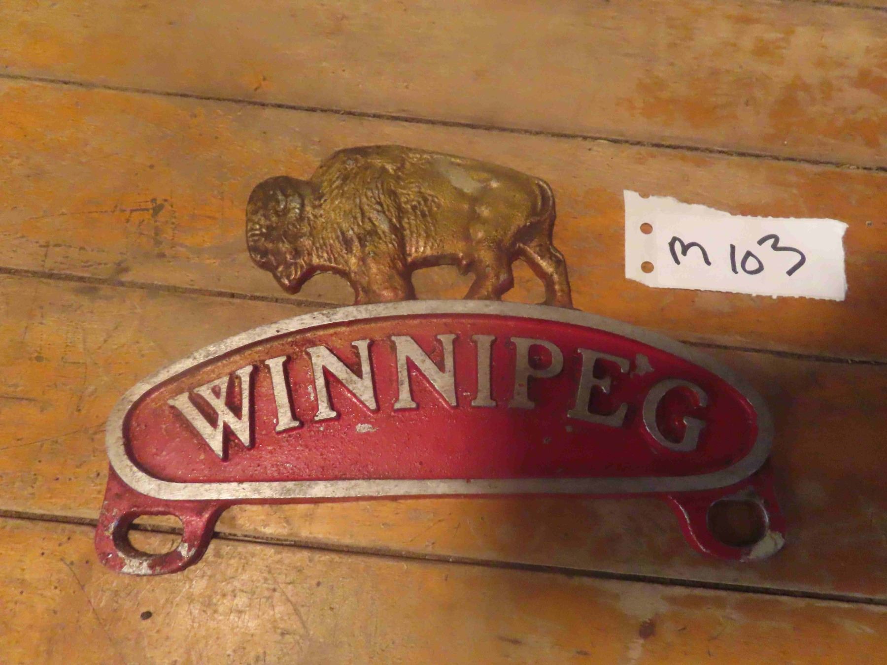 Early Winnipeg Metal License Plate Topper with Buffalo 7'' x 5''