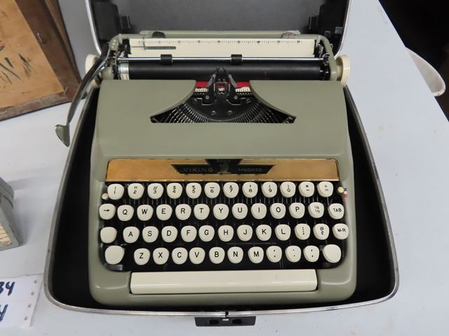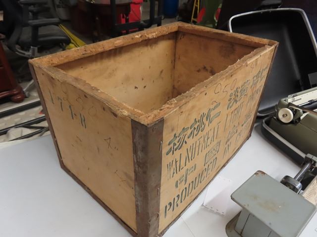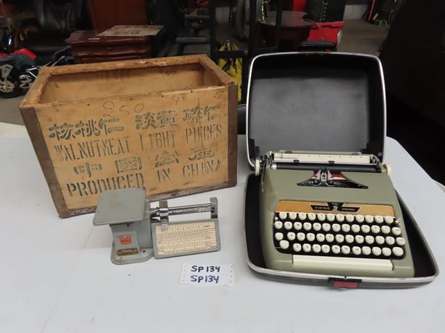 Eaton's Viking Portable Typewriter, Triner Postal Scale, Wooden Crate from China