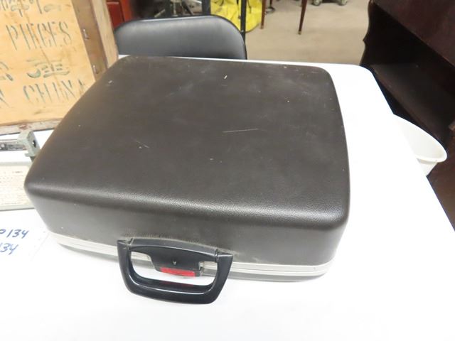 Eaton's Viking Portable Typewriter, Triner Postal Scale, Wooden Crate from