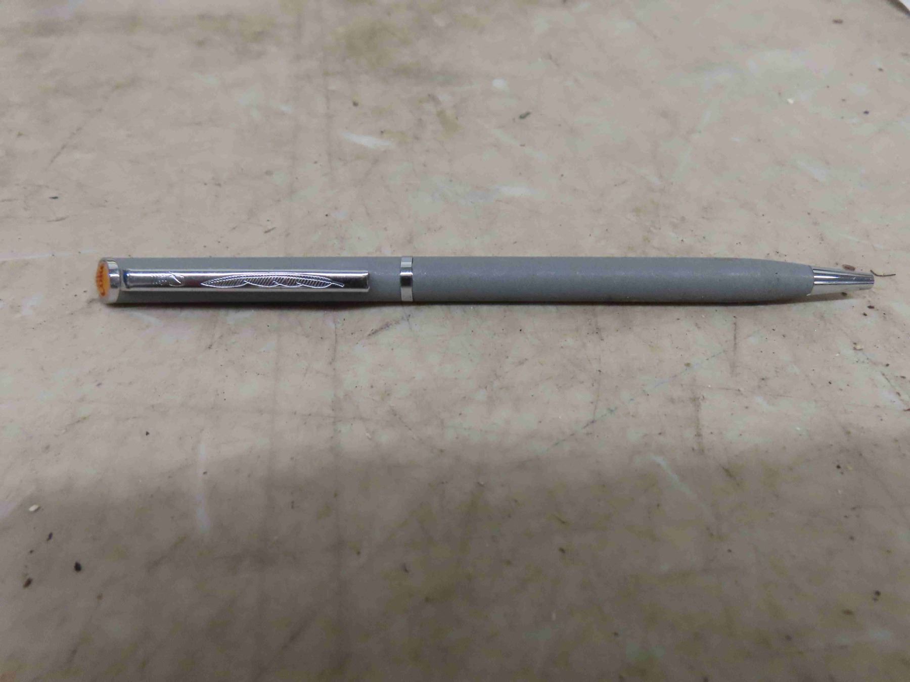 Ebony Straight Razor in Box, Brass Sausage Pump, Early Diet Coke Pen, 1920s Chrysler Emblem