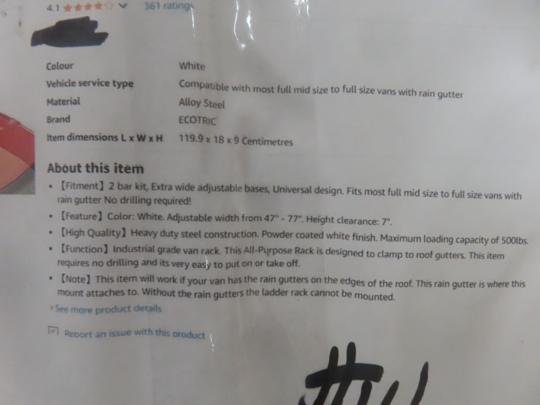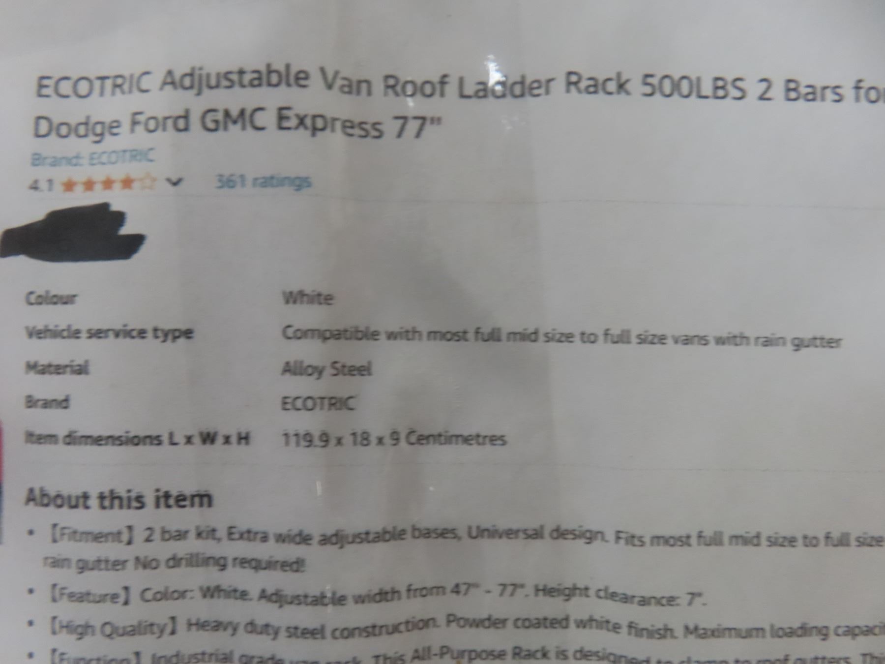 Ecotric Adjustable Van Roof Ladder Rack 500LBS 2 Bars for Chevy Dodge Ford GMC Express 77''