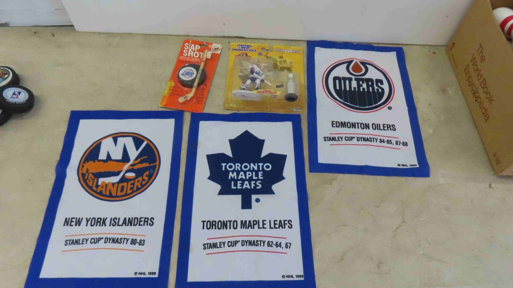 Edmonton Oilers Banner, Wayne Gretzky Starting Line Up Figure, Toronto Banner, Jets Hockey Stick Toothbrush
