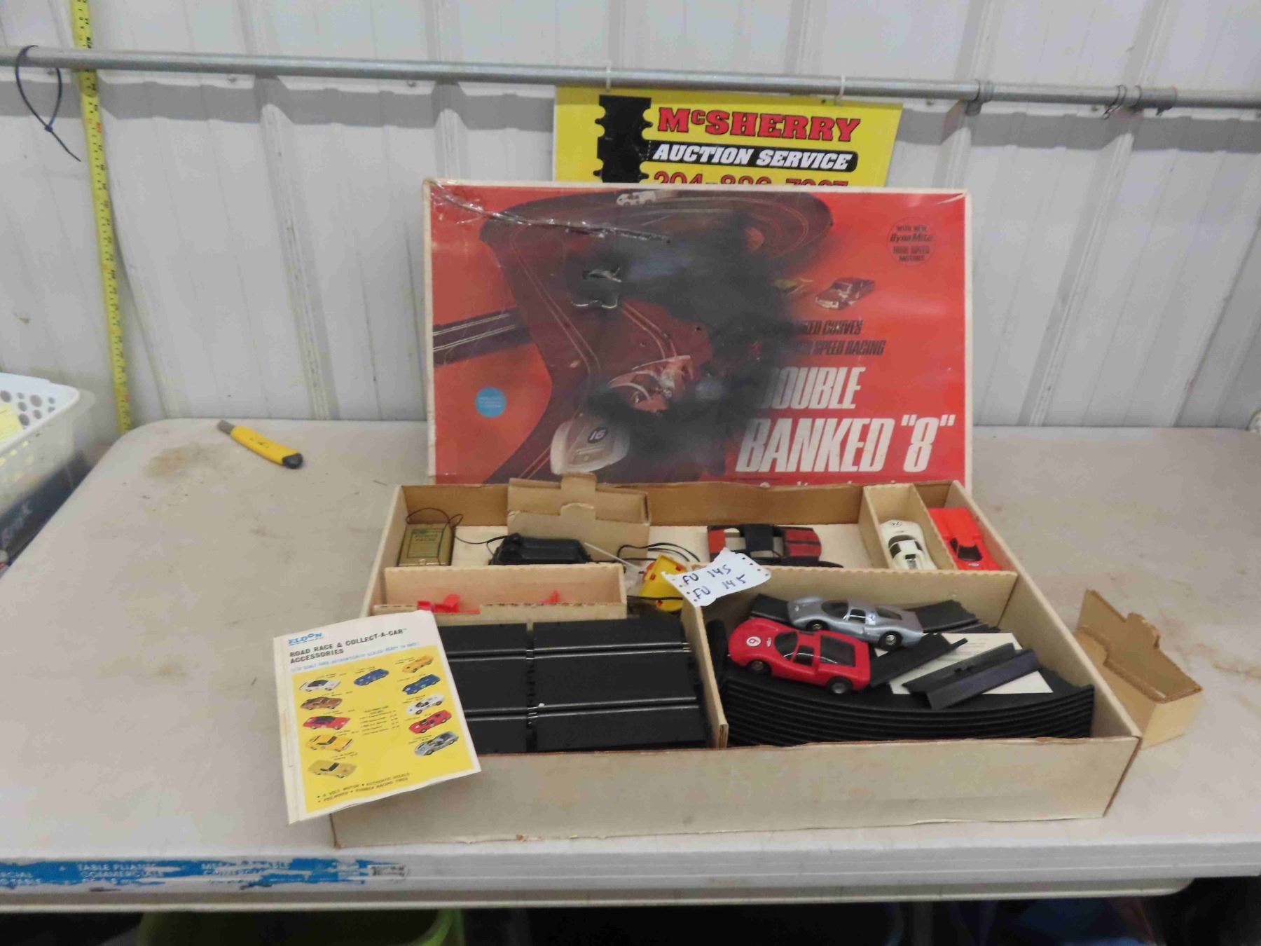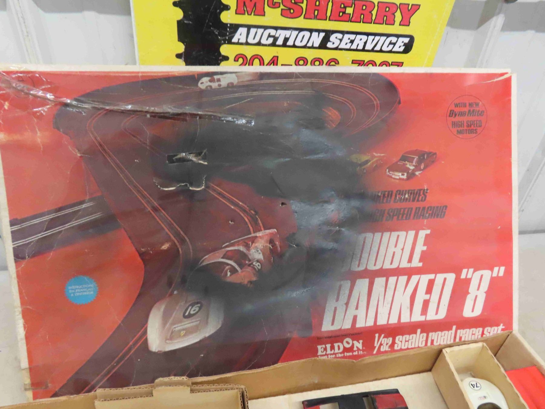 Eldon 1/32 Scale Road Race Set - Complete, 2 Car Power Train + 6 Car Skins - with Box + Pamphlets