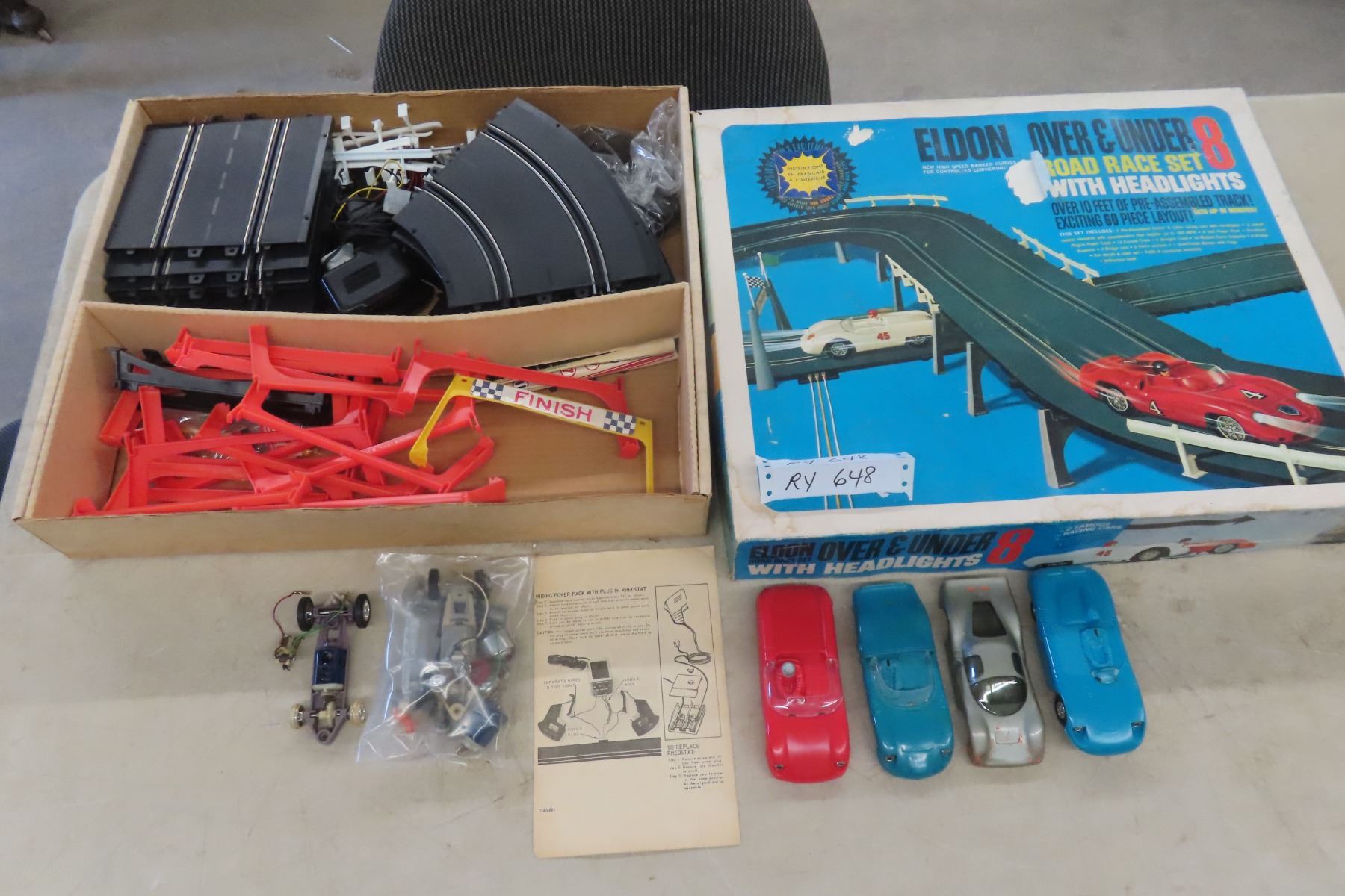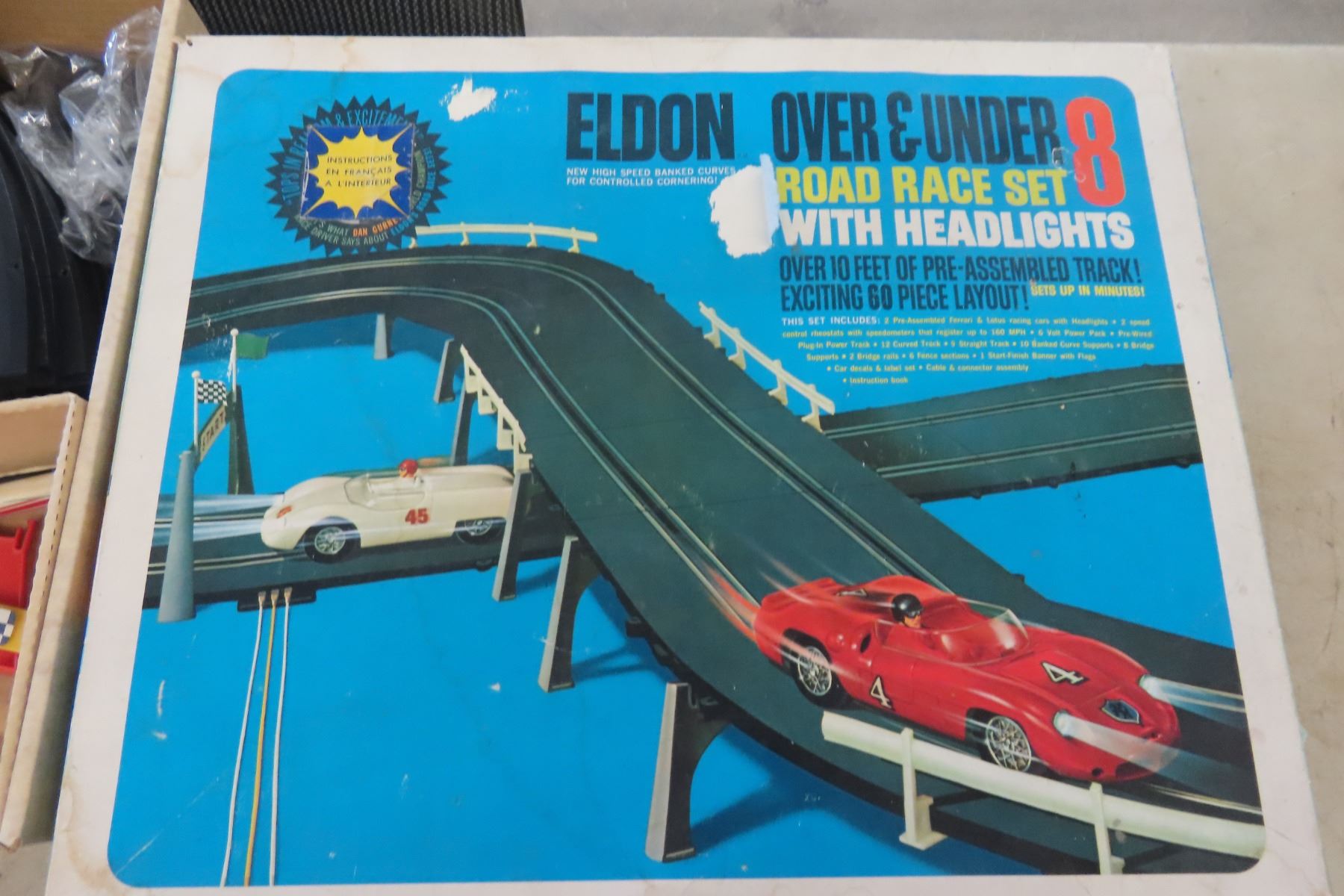 Eldon Road Race Set 1960s Over + Under - No Power Pack, Extra Cars Included - Cars Require Repair