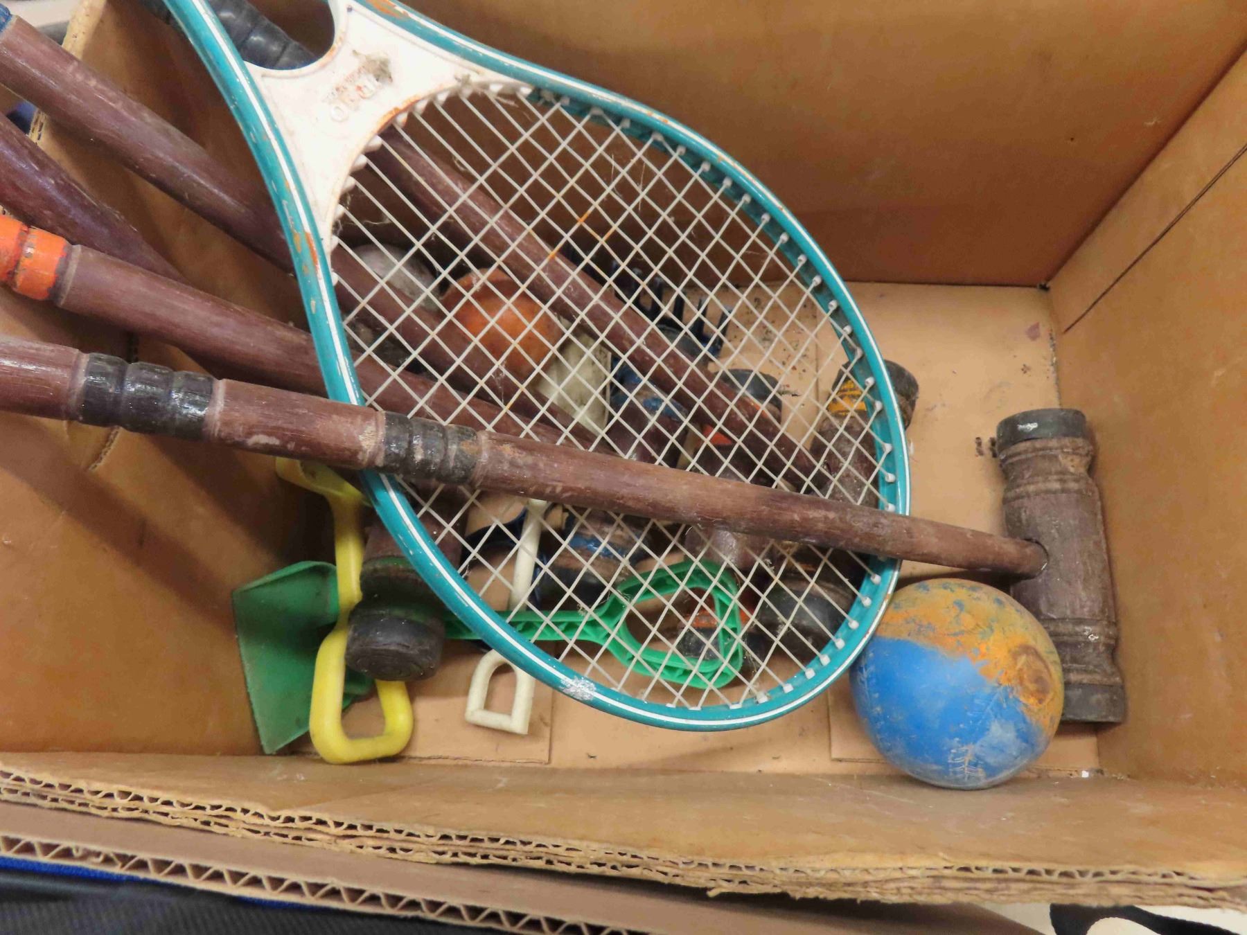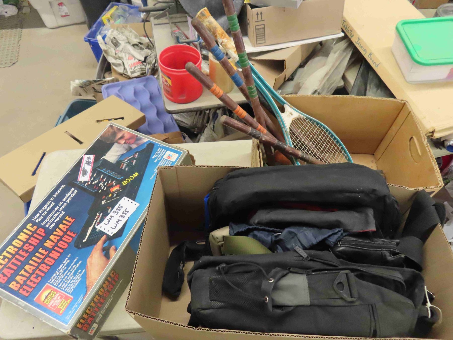Electronic Battleship, Backpacks, Croquet Whickets + Tennis Racket