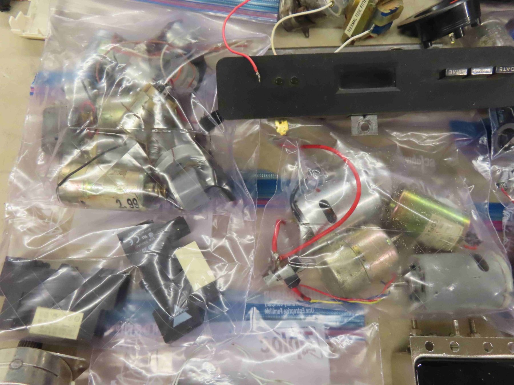 Electronic Components: Fans, Motors, Speaker Jacks, CPUs, Breakers &