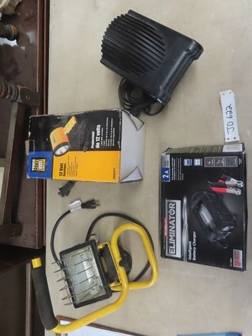 Eliminator 2Amp Trickle Charger, 12 V Spot Light, Interior Car Warmer, Portable Light
