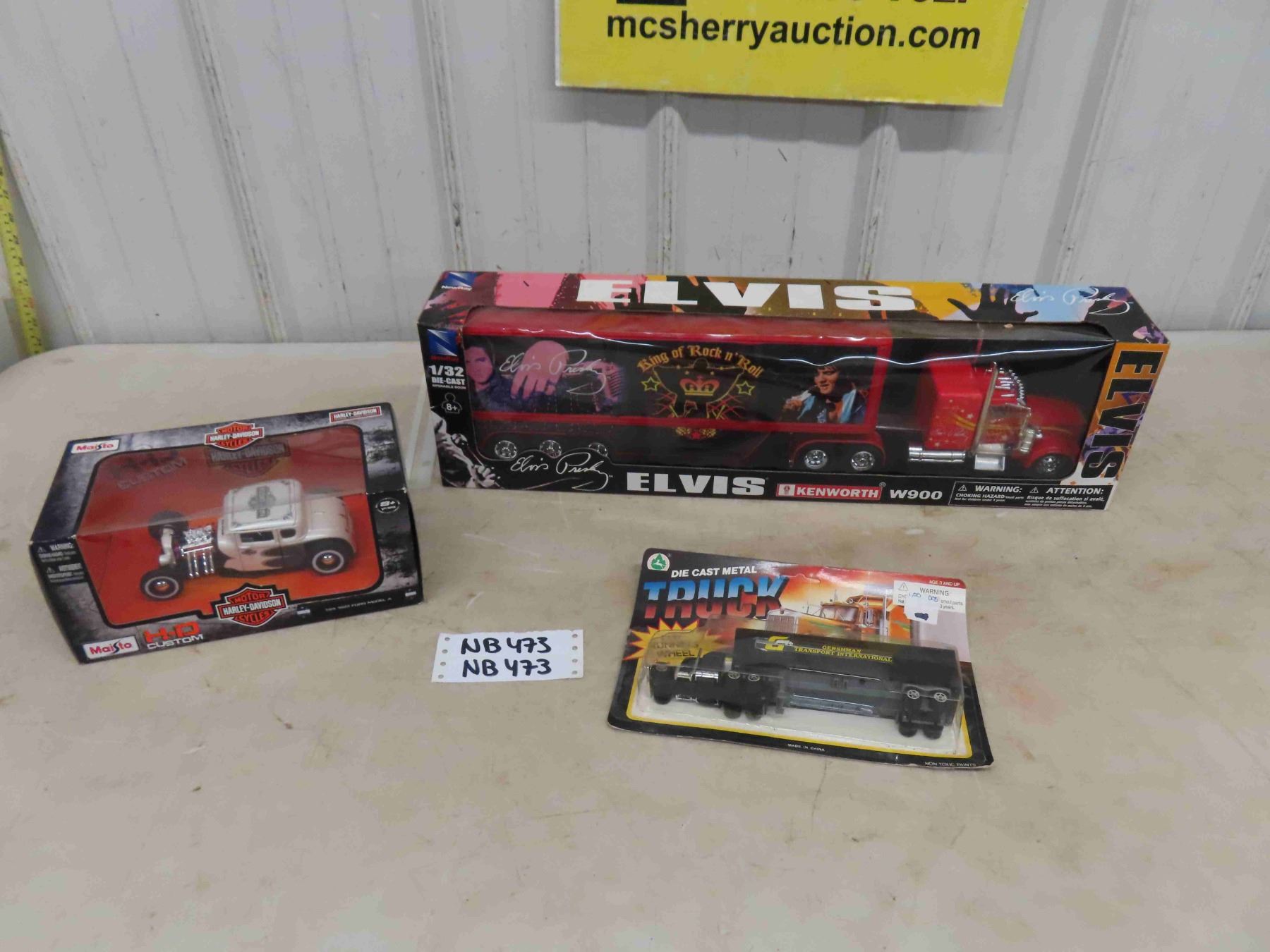Elvis Kenworth W900 Semi Trailer 1/32 Scale in Box, Maisto Harley Davidson 1929 Ford Model A, Small Die Cast Semi