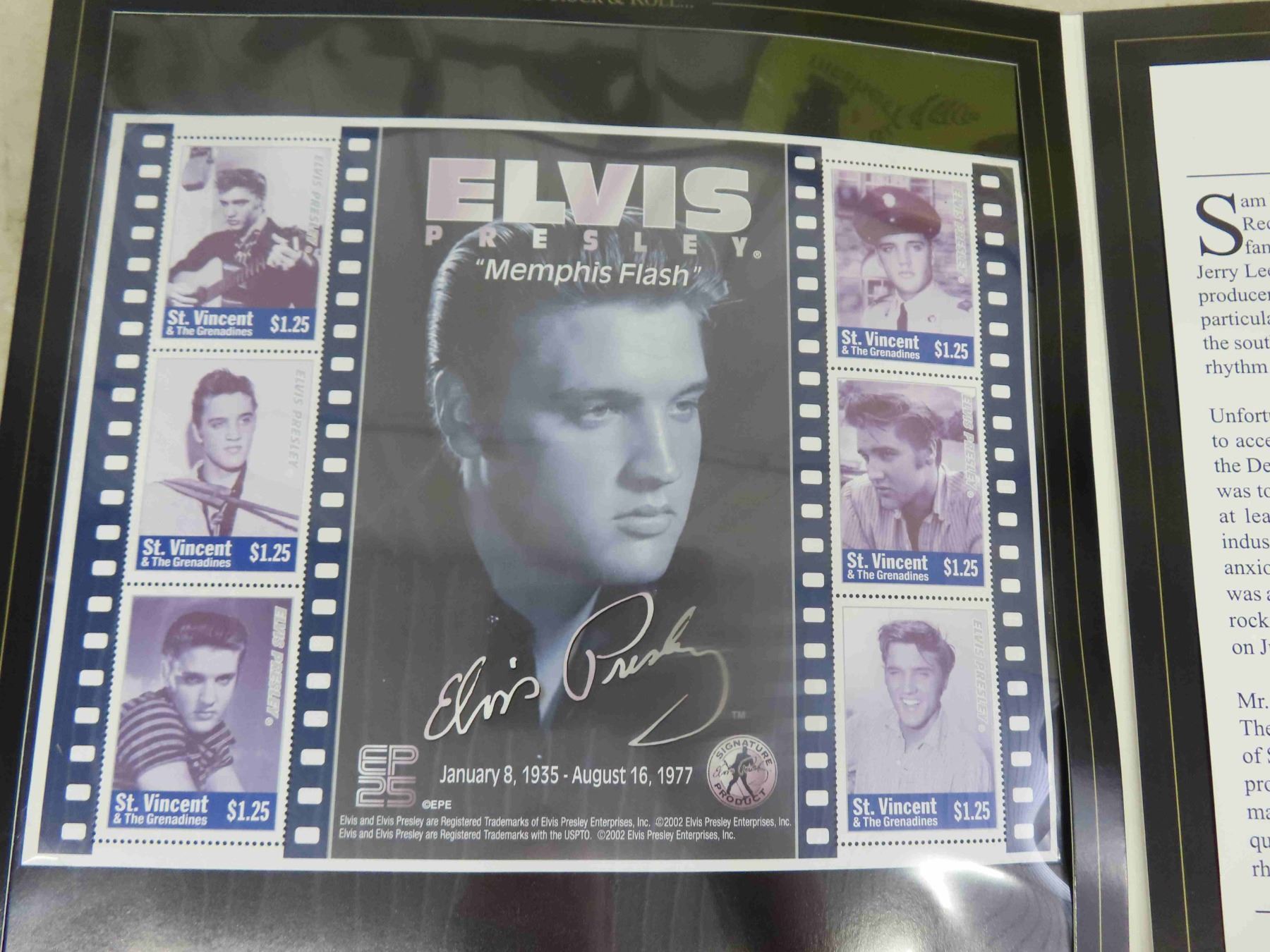 Elvis Presley Stamp Collection - 8 Uncut Sheets in Folders ; Bequia, Palau, Gambia, St. Vincent, plus more