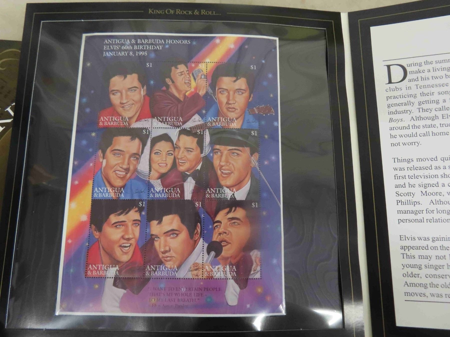 Elvis Presley Stamp Collection - 8 Uncut Sheets in Folders ; Bequia, Palau, Gambia,