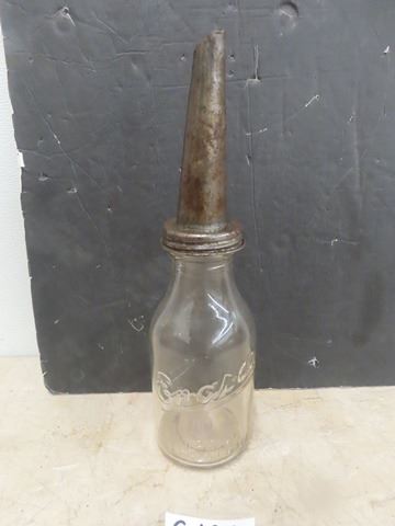 Embossed Enarco 'The Oil of a Million Tests' 1 Imperial Quart Oil Bottle with Spout 15 1/2'' Tall