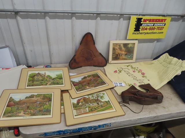 Embroidered Laundry Bag, Vintage Ladies Shoes, Picture, Place Mats, Leather Artwork with Native Ima