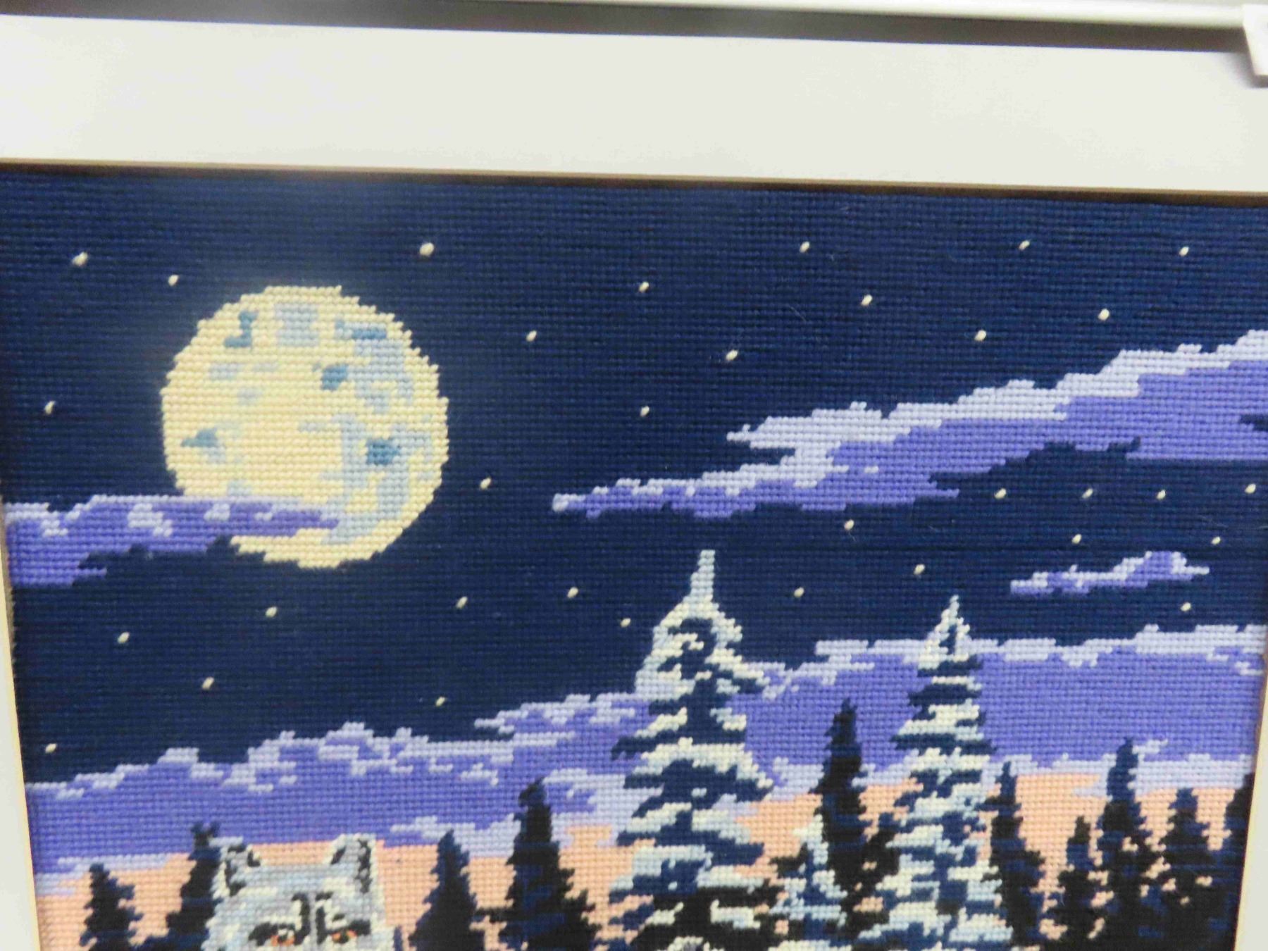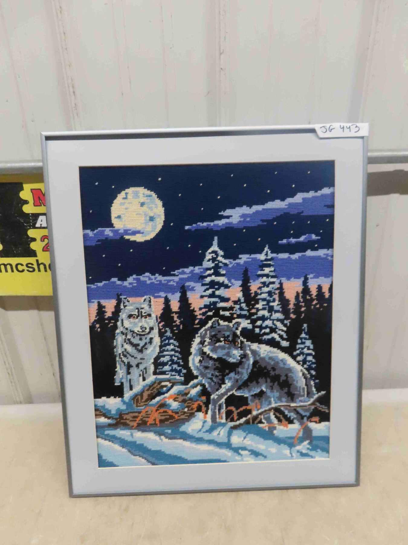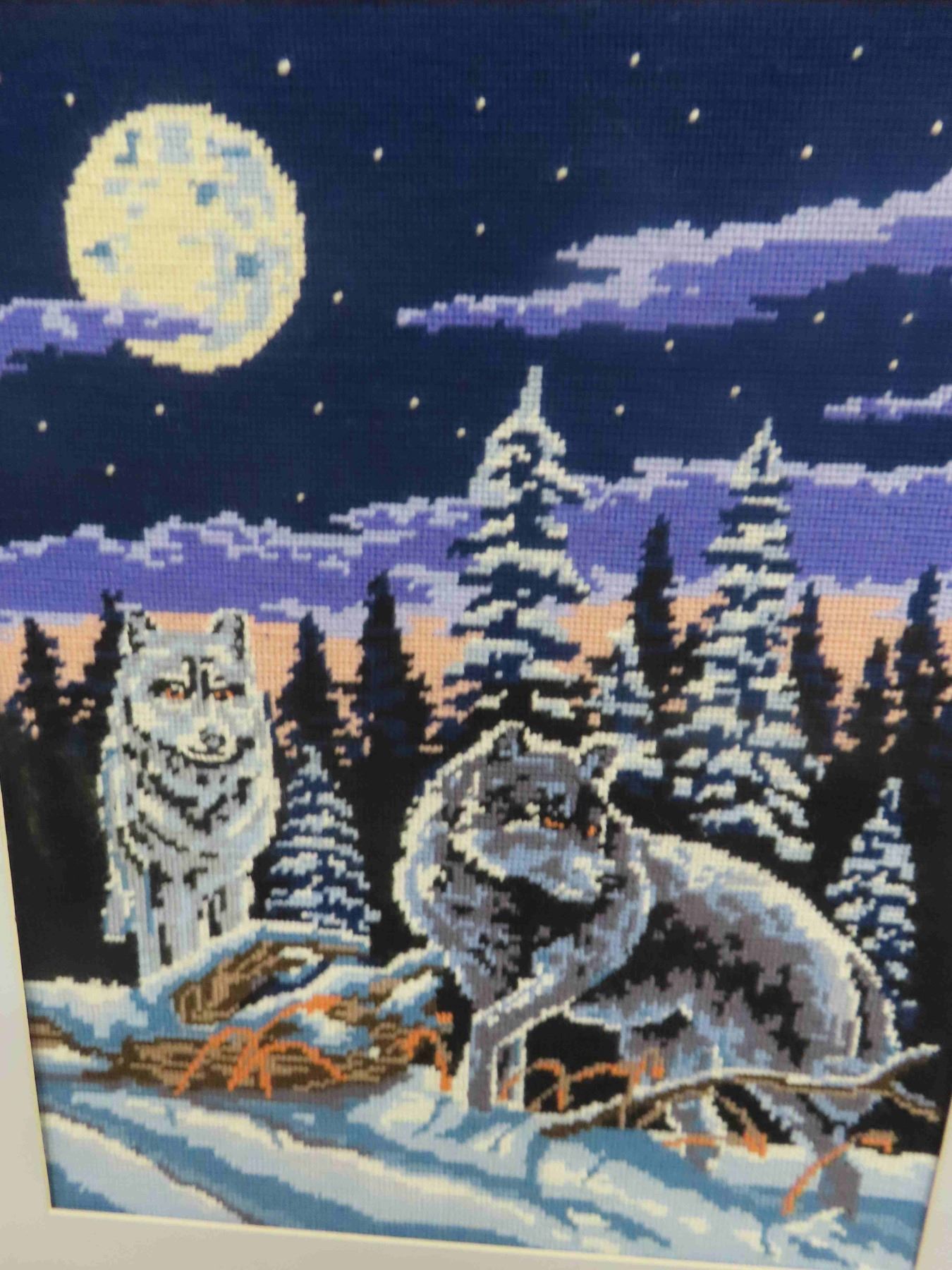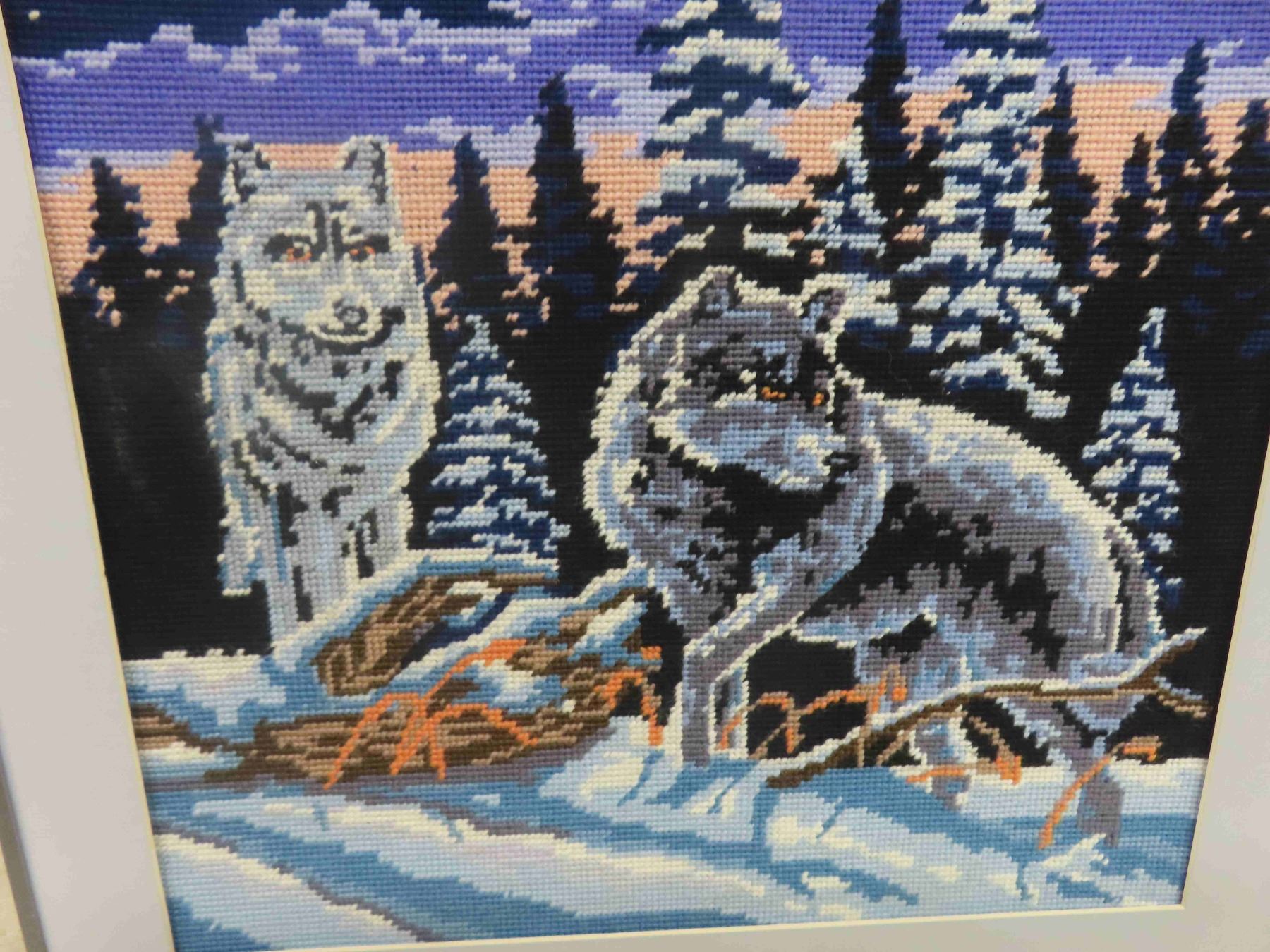 Embroidered Picture of 2 Wolves with Matte + Frame - no glass 19" x 23"