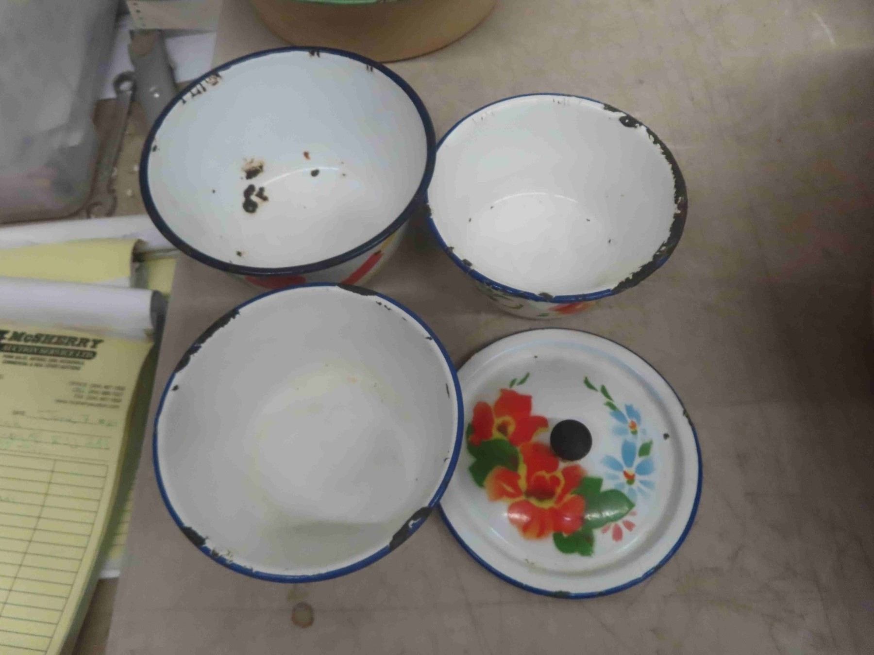 Enamel Pots, Lids, Bowls, Basins, Metal Funnels, Cookie Cutters & More