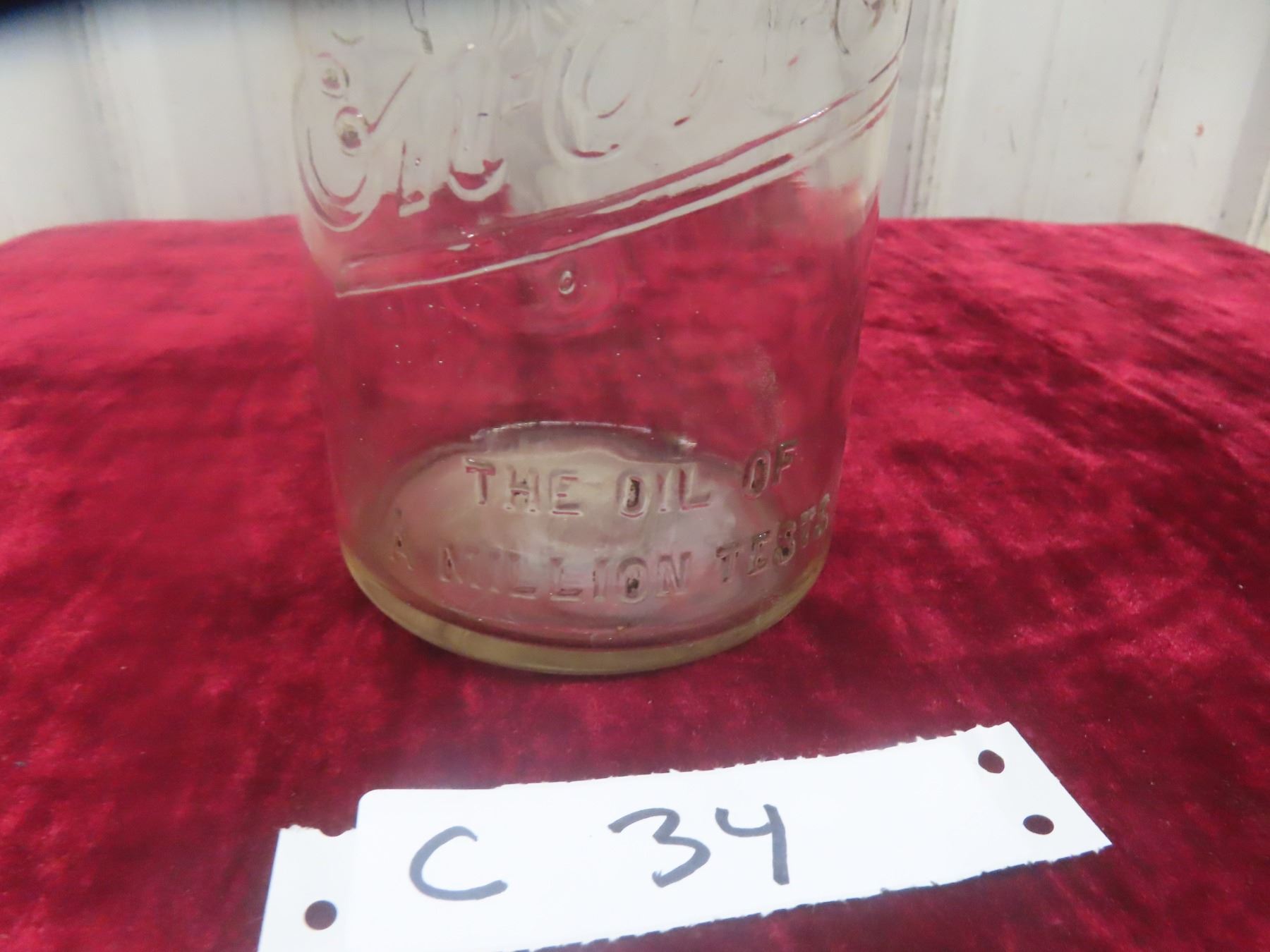 Enar Co Quart Oil Jar with Embossed Labeling " The Oil of a Million Tests"