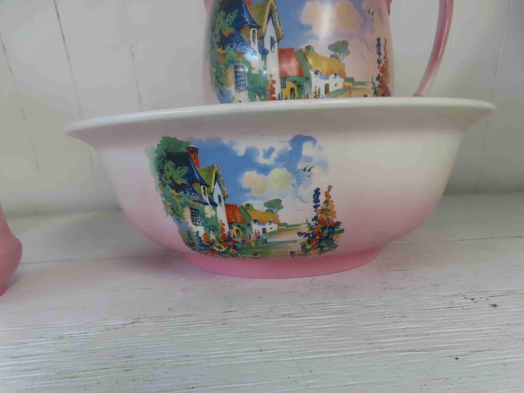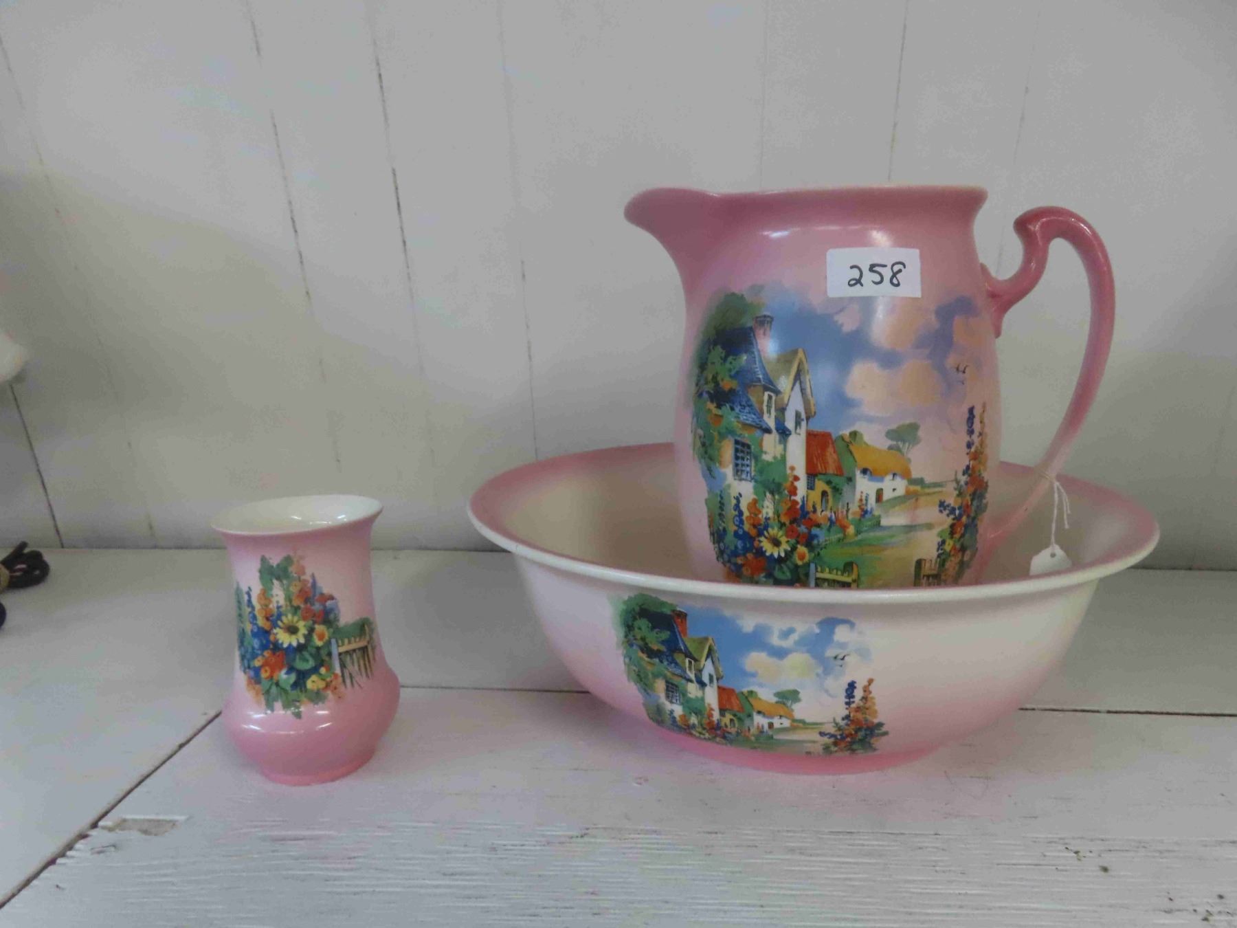 English Ironstone ; Basin, Pitcher, Toothbrush Cup