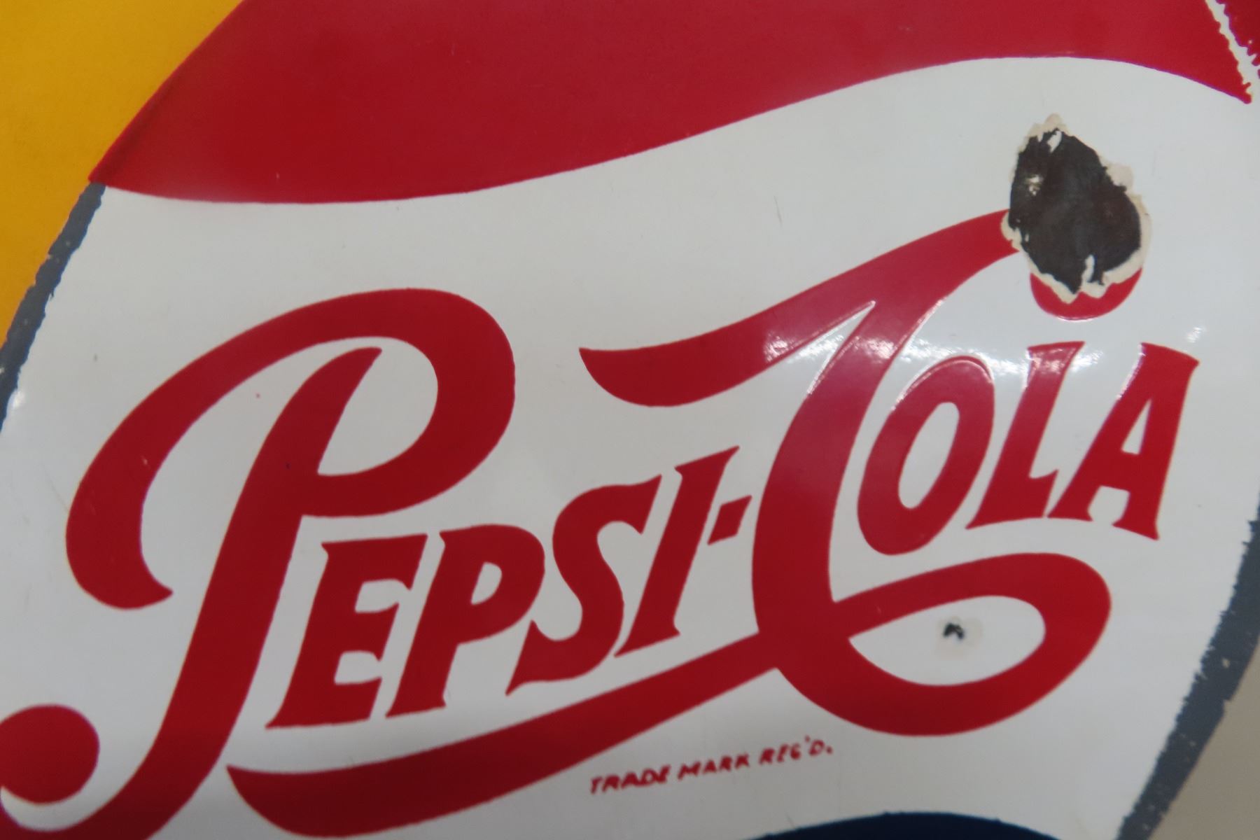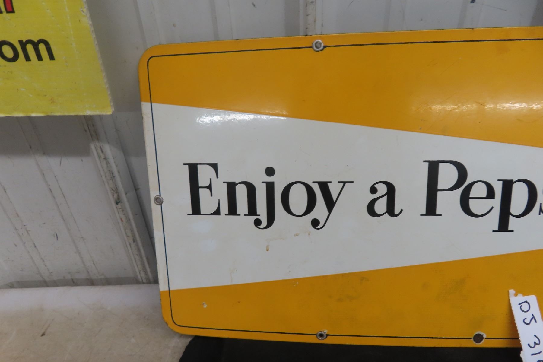 Enjoy a Pepsi Cola Porcelain Kickplate Sign 29 1/2'' x 12 1/2''