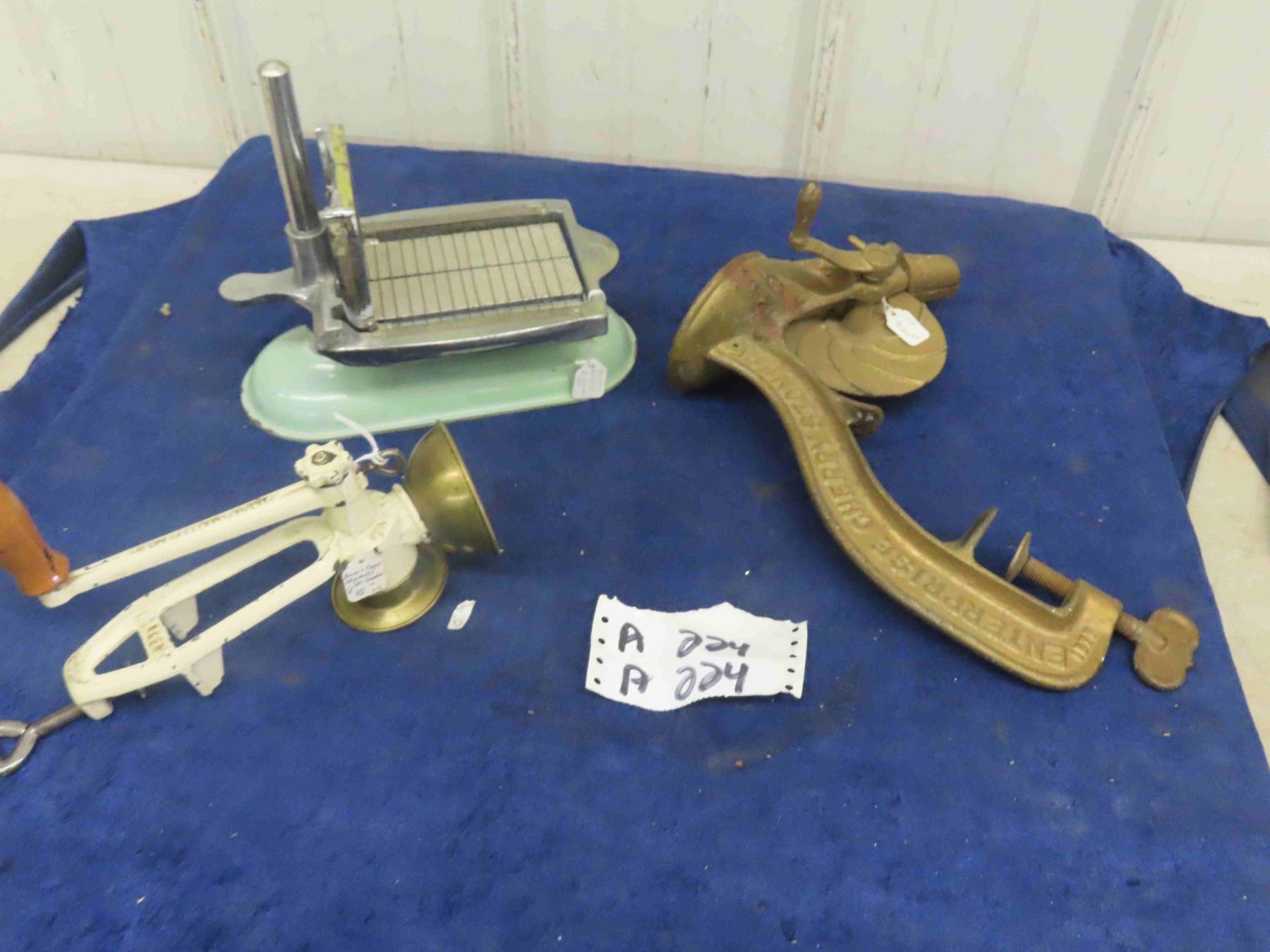 Enterprise Cherry Stoner, Butter Slicer, Brass + Cast Coffee Grinder