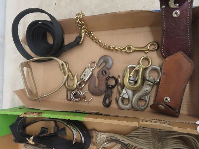 Equine Items- Lead Rope, Cinches, Hoof Pick, Snaps plus....