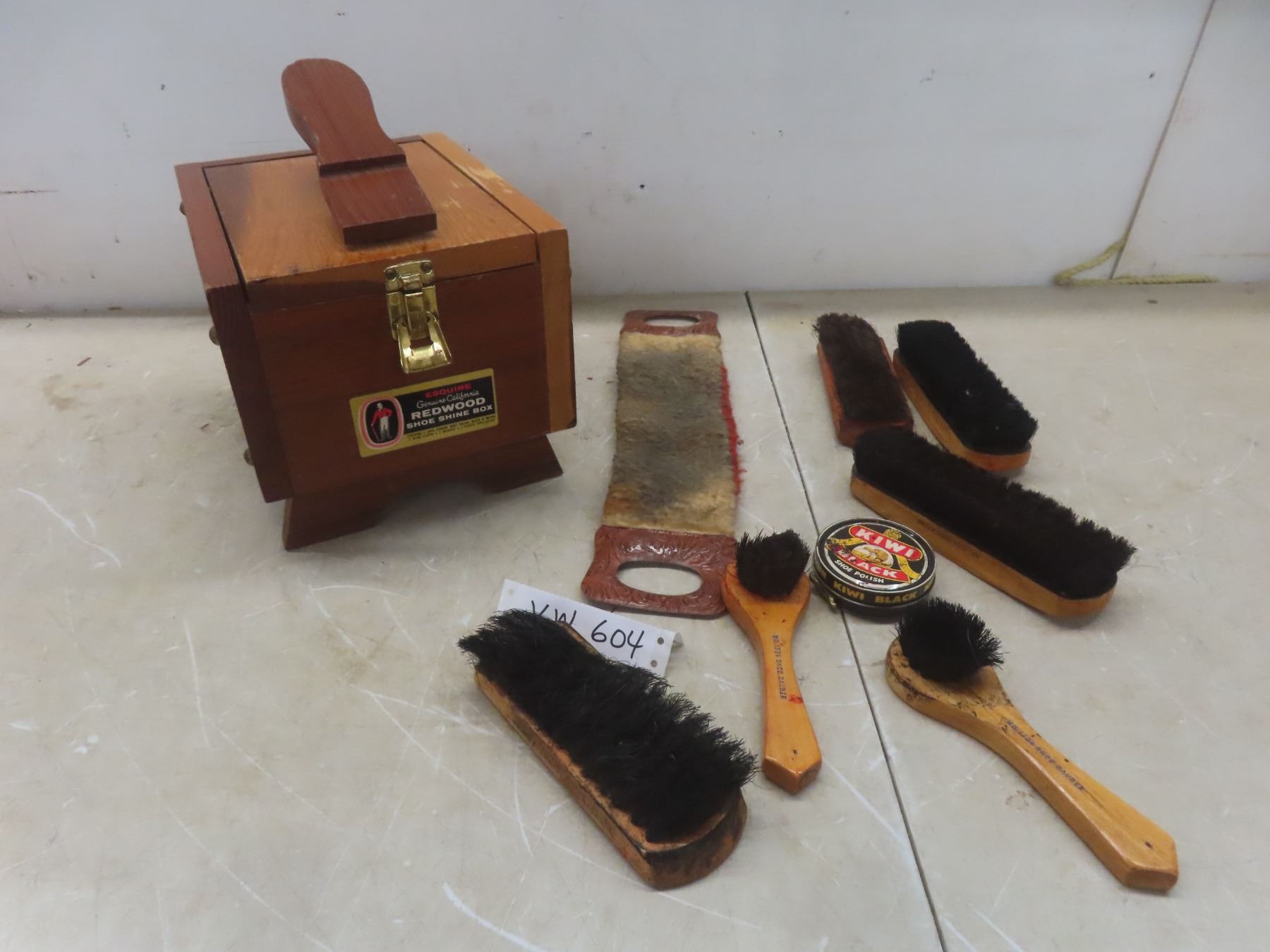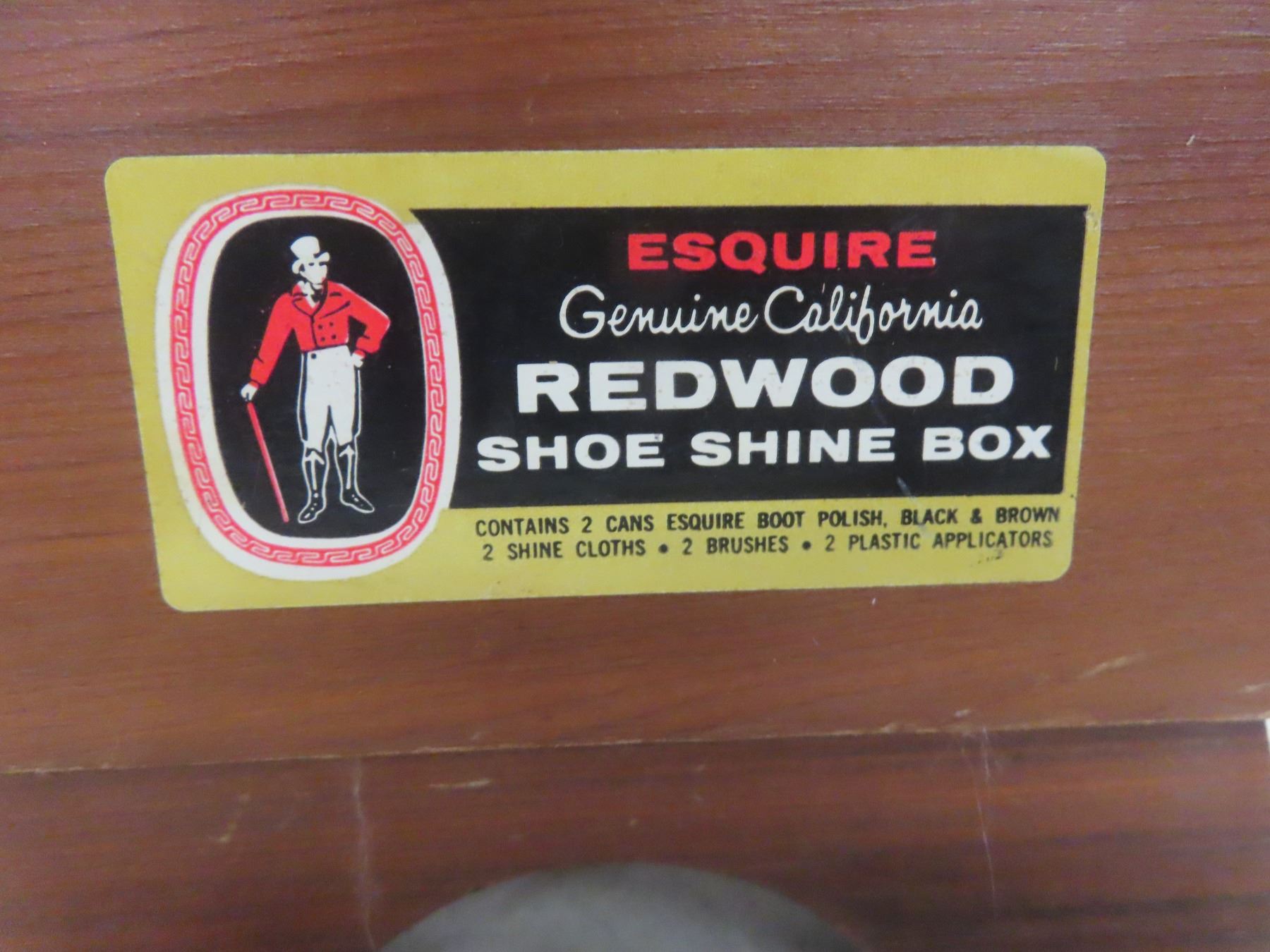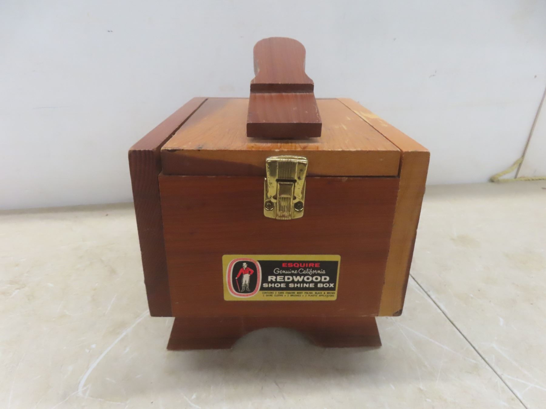 Esquire Redwood Shoe-Shine Box With Accessories.