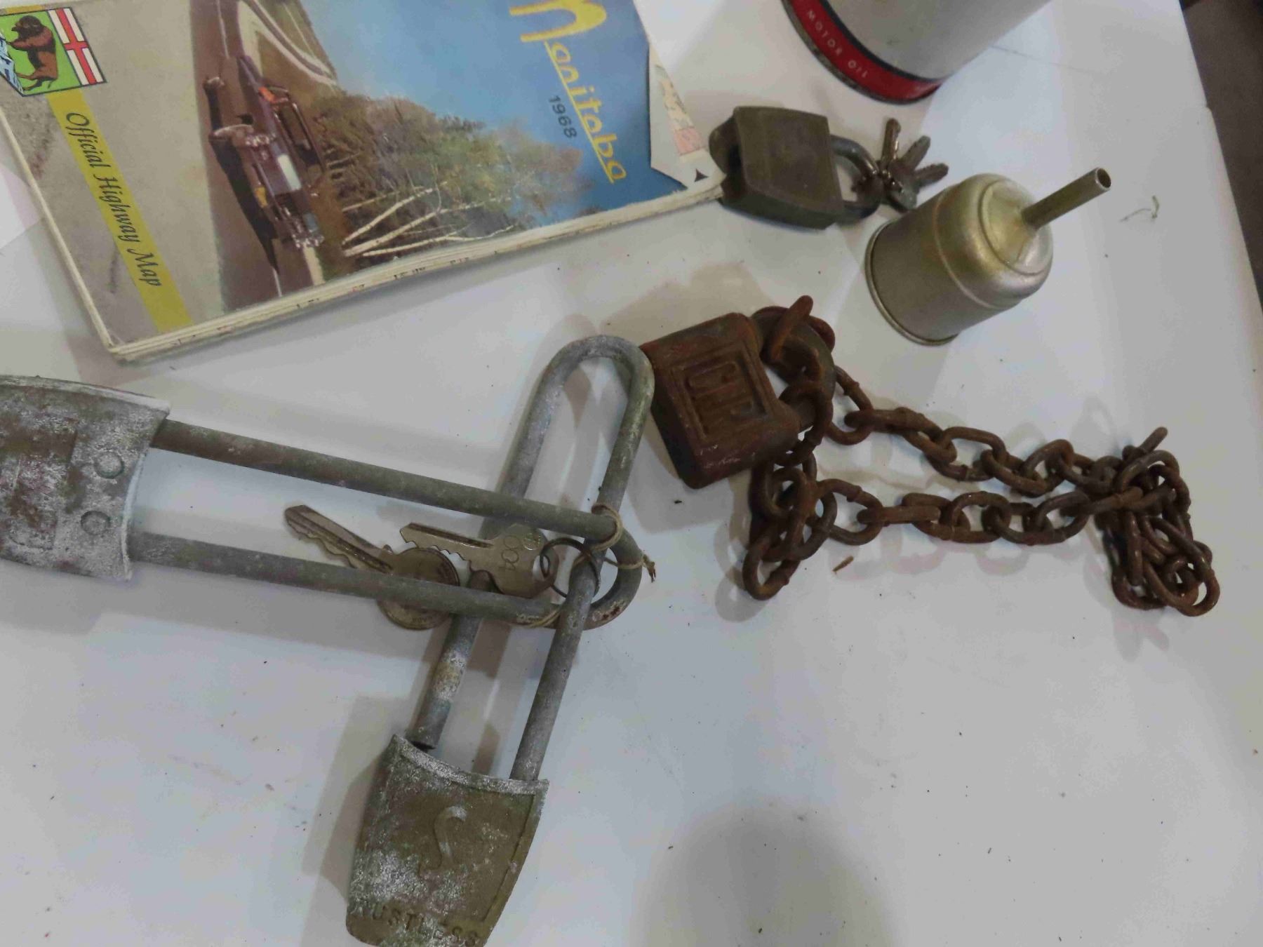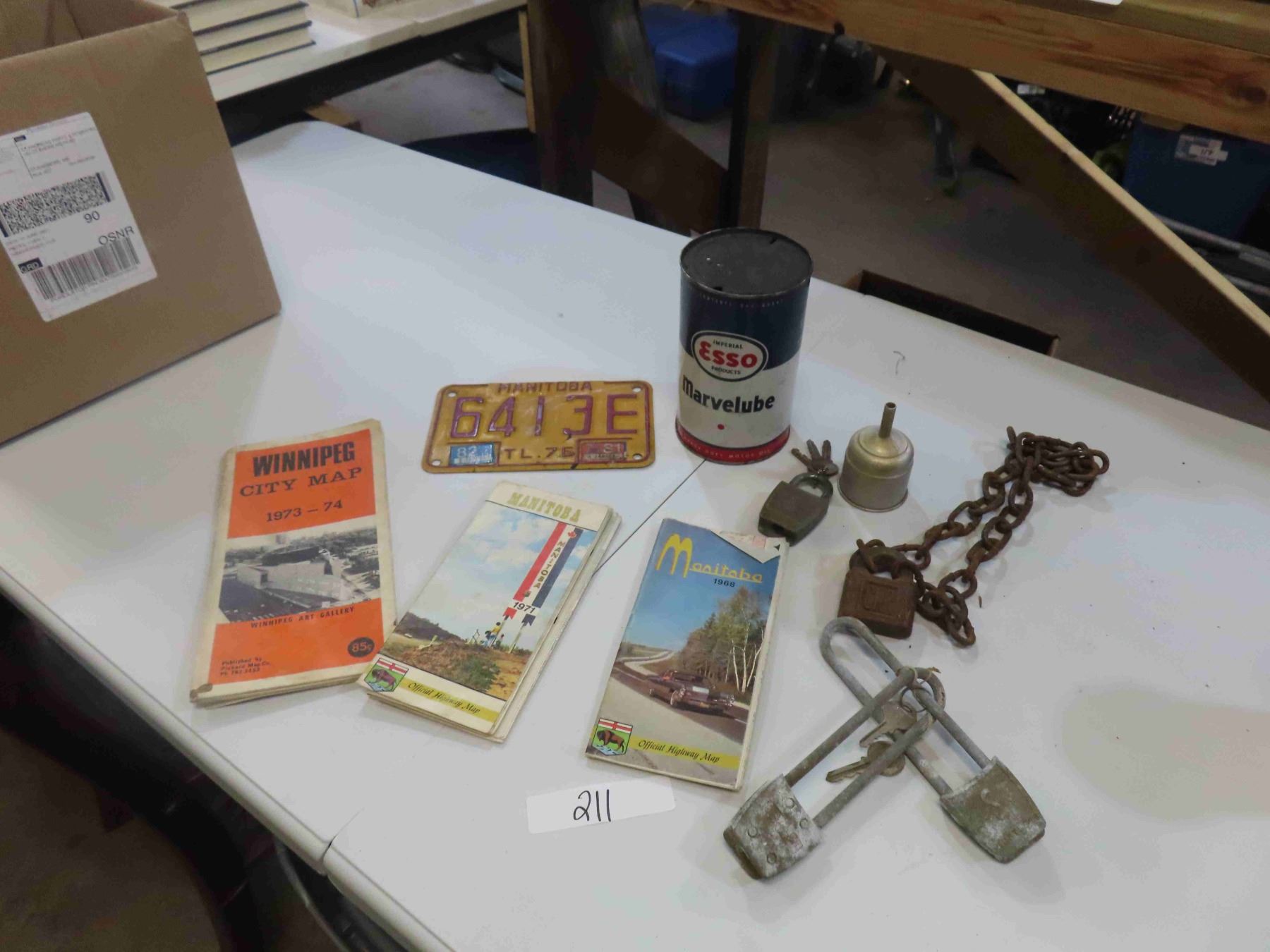 Esso Marvelube Can, CNR Lock, 60s and 70s Road Maps, License Plates