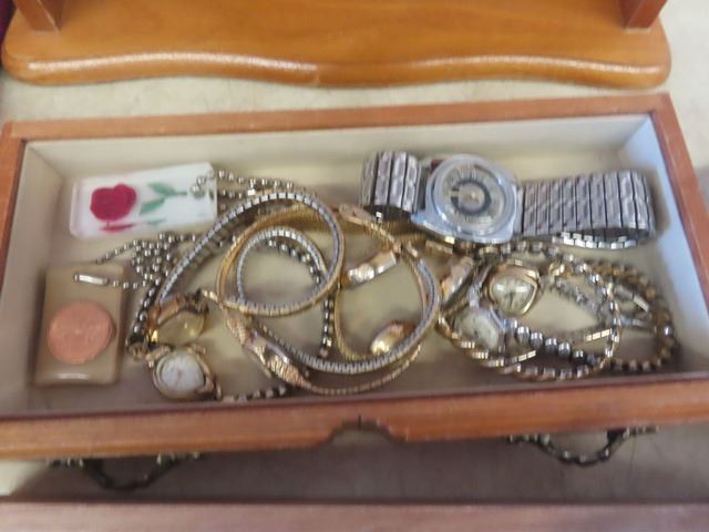 Estate Jewelry; Watches, Broaches, Rings, Necklace with Jewelry Boxes