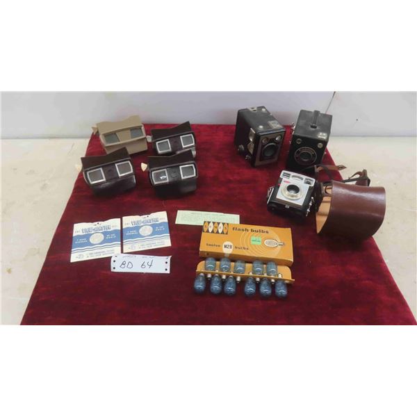 Vintage Viewmaster and Box Camera Lot , Flash Bulbs