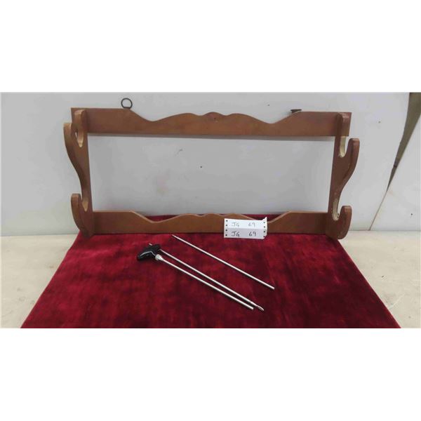 Wooden Hanging Rifle Gun Rack , Rifle/Pistol 3pce Cleaner Rods 69 - Wooden Hanging Rifle Gun Rack , Rifle/Pistol 3pce Cleaner Rods