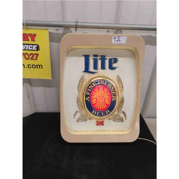 Vintage Miller Lite Plastic/Lights Up (Works) 18'' x 13''