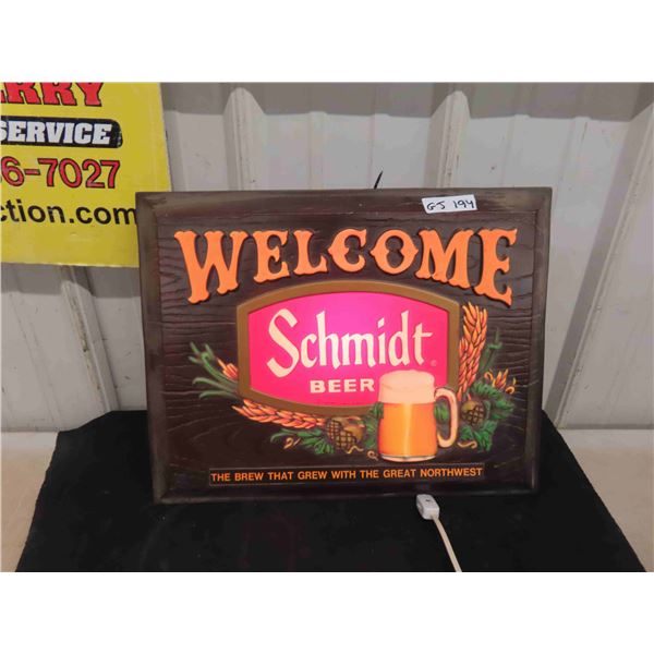 Vintage Schmidt Beer Sign Plastic/Lights Up 14'' x 18''