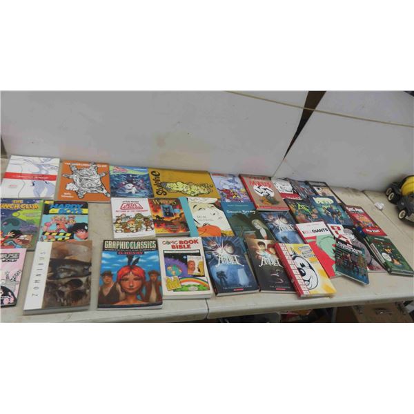 31 Graphic Novels Including Sin City , Maus , The Umbrella Academy, Lunch Club, Warriors, Marvel Guardians of the Galaxy, Graphic Classics & Lot...