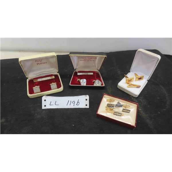 4 Sets of Vintage Cuff Links , Tie Clips, Includes 2 Sets with Uniroyal Markings119b - 4 Sets of Vintage Cuff Links , Tie Clips, Includes 2 Sets with Uniroyal Markings
